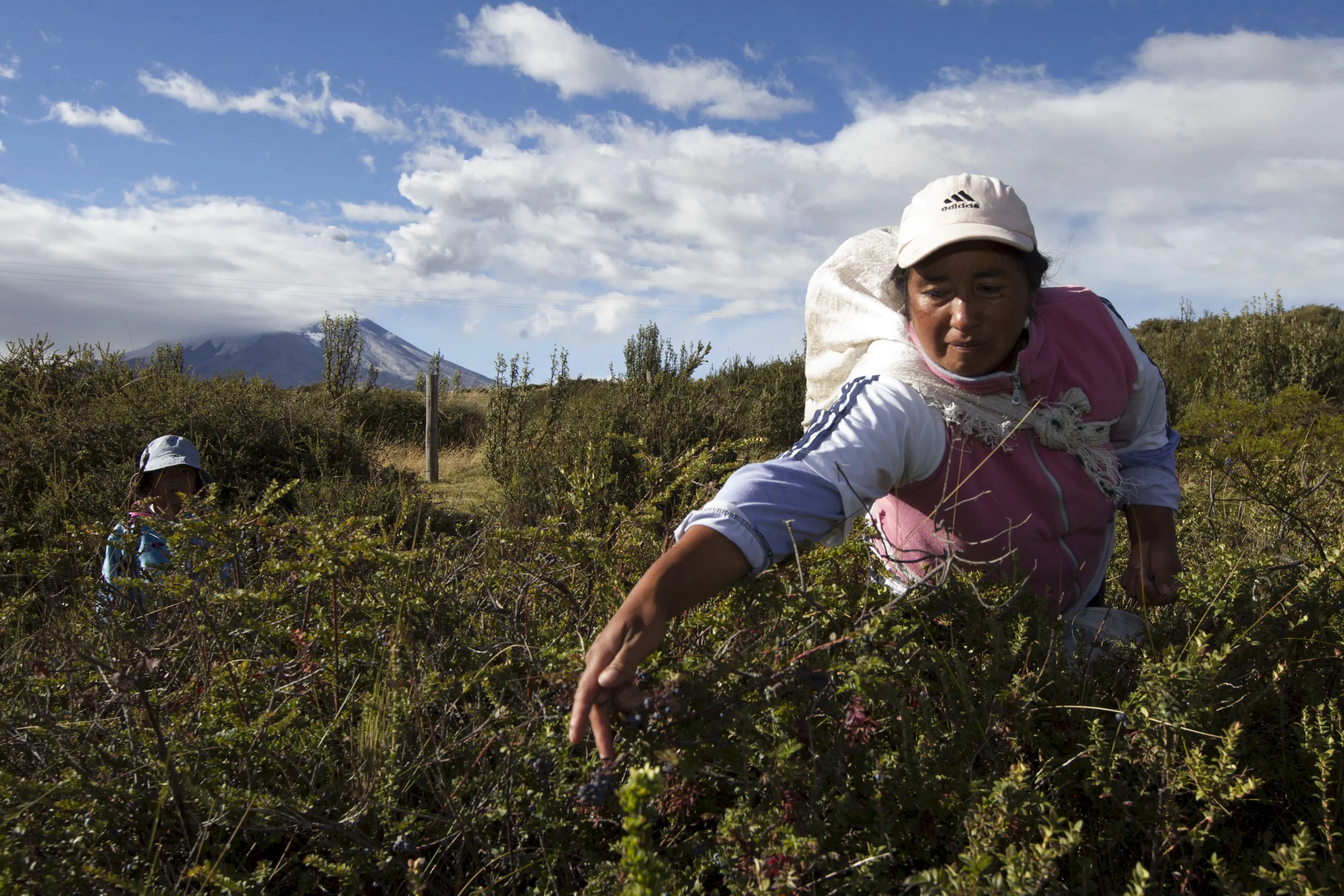 Locals harvest mortinios (blueberries) at the northern outskirts of the Cotopaxi volcano, one of the world's highest active volcanoes, at El Pedregal, in Ecuador, October 22, 2015. (Photo by Guillermo Granja/Reuters)