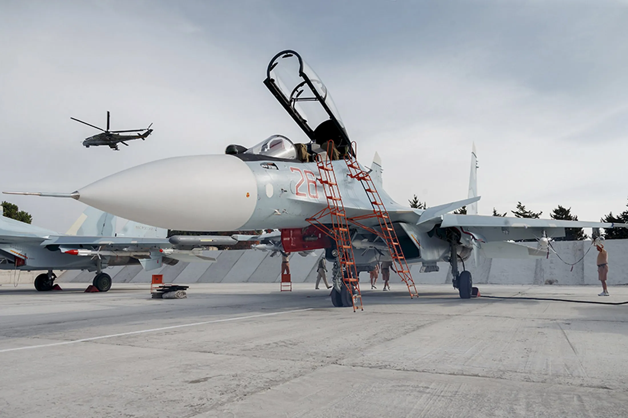 A Sukhoi Su-30 fighter jet is seen on the tarmac at the Hmeymim air base near Latakia, Syria, in this handout photograph released by Russia's Defence Ministry on October 22, 2015. (Photo by Reuters/Ministry of Defence of the Russian Federation)