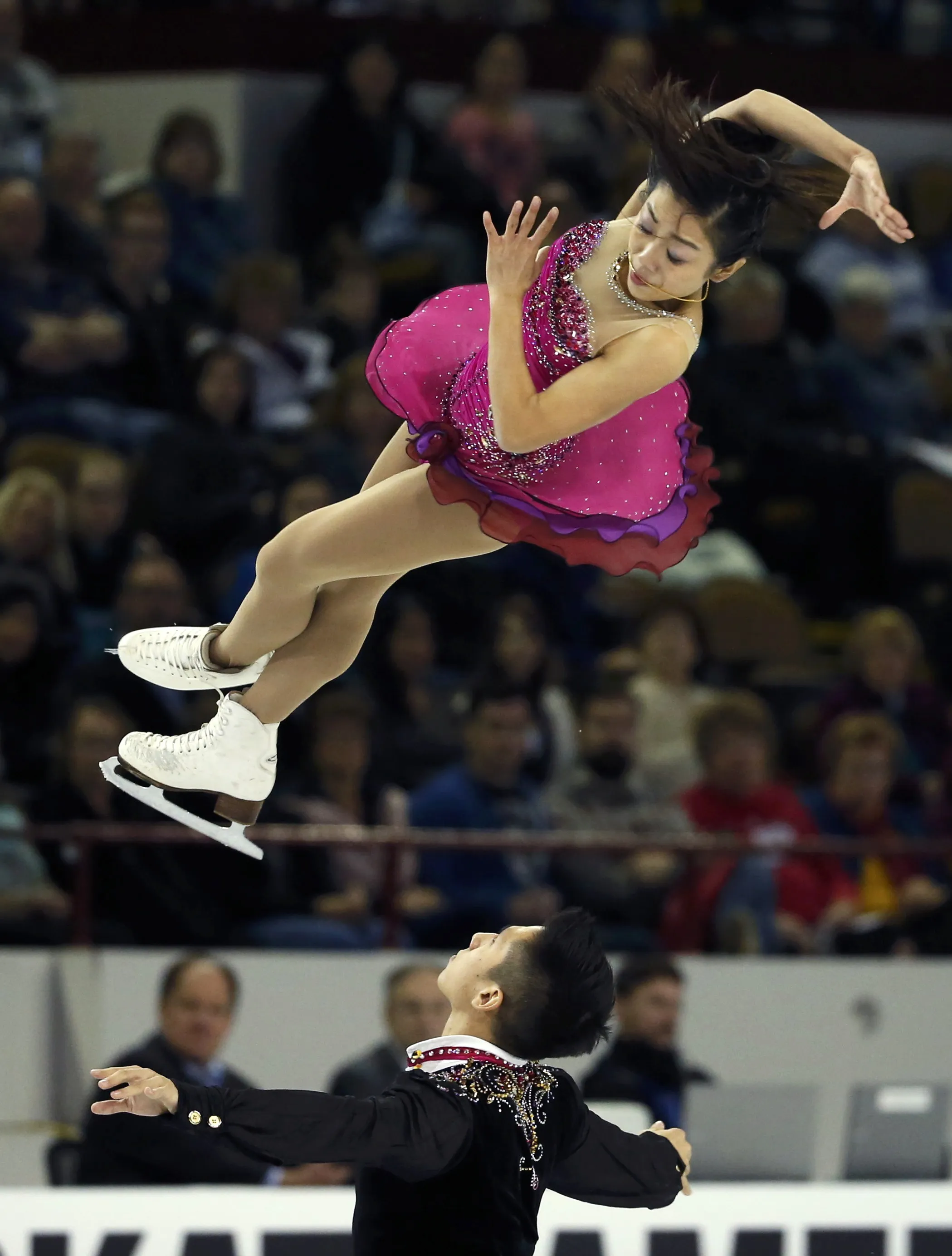 Sui Wenjing and Han Cong of China perform during the Pairs short program at the Skate America figure skating competition in Milwaukee, Wisconsin October 23, 2015. (Photo by Lucy Nicholson/Reuters)