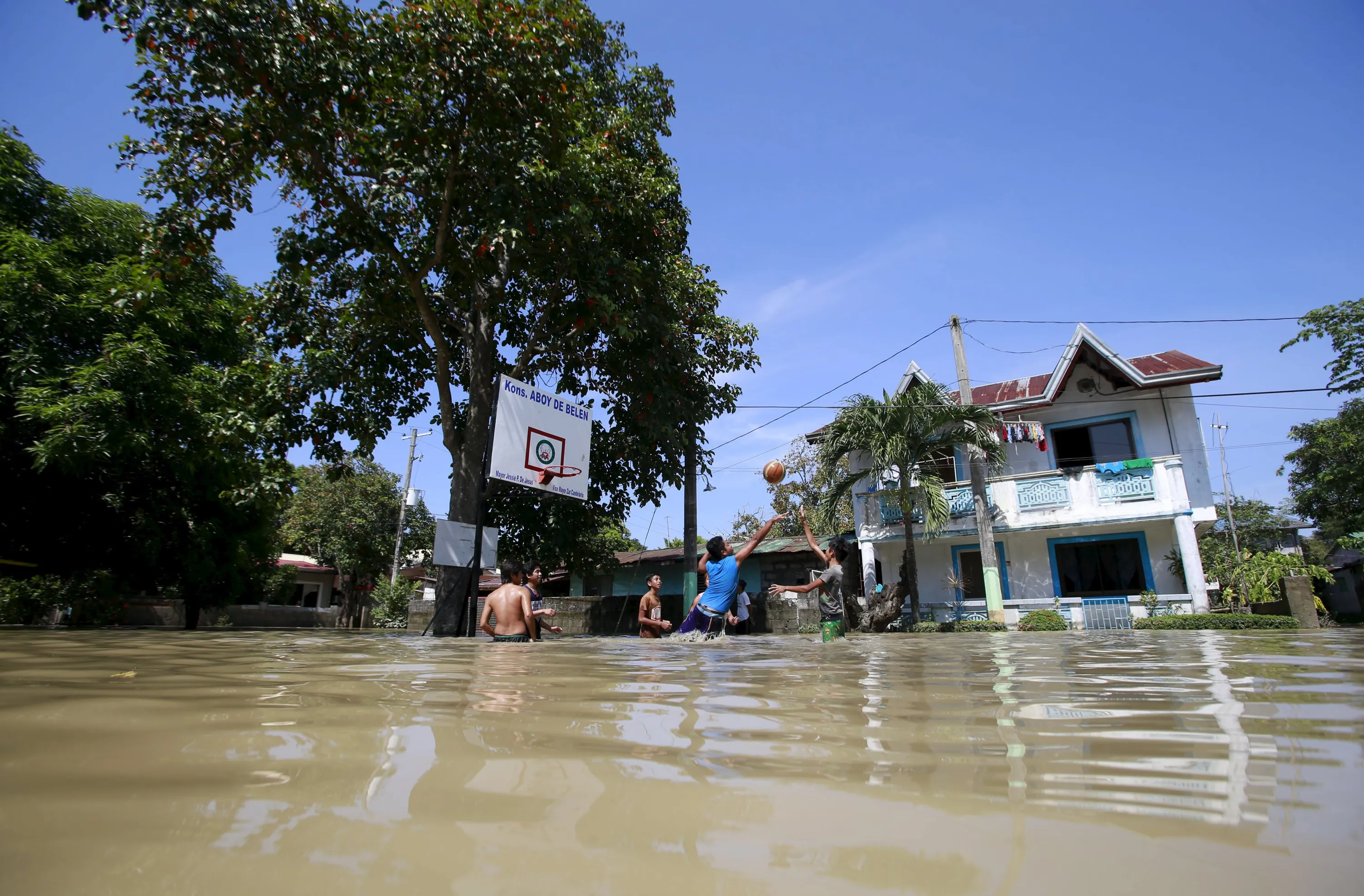 Residents play basketball while wading through floodwaters a week after typhoon Koppu battered Calumpit town, Bulacan province, north of Manila October 24, 2015. (Photo by Romeo Ranoco/Reuters)