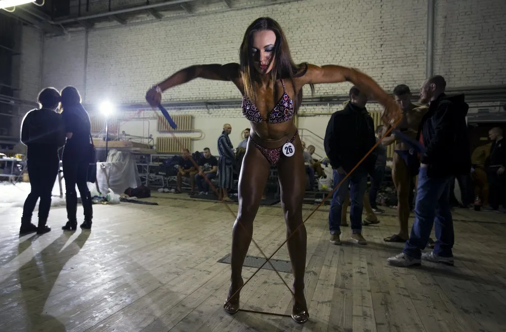 A woman prepares backstage during Belarus Cup in bodybuilding and fitness in Minsk, October 24, 2015. (Photo by Vasily Fedosenko/Reuters)