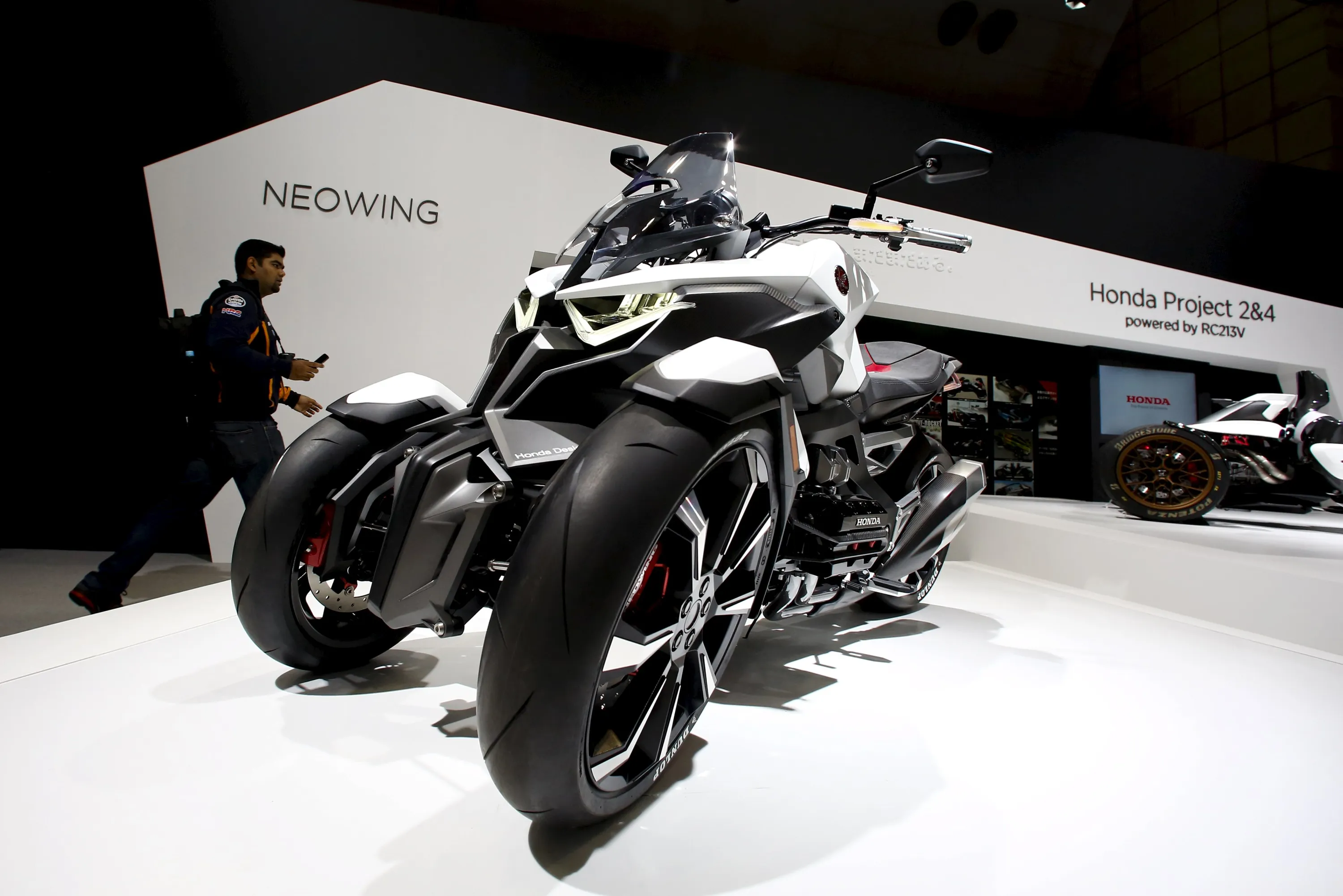 A man walks past a Honda Neowing tricycle at the 44th Tokyo Motor Show in Tokyo, Japan, October 28, 2015. (Photo by Thomas Peter/Reuters)