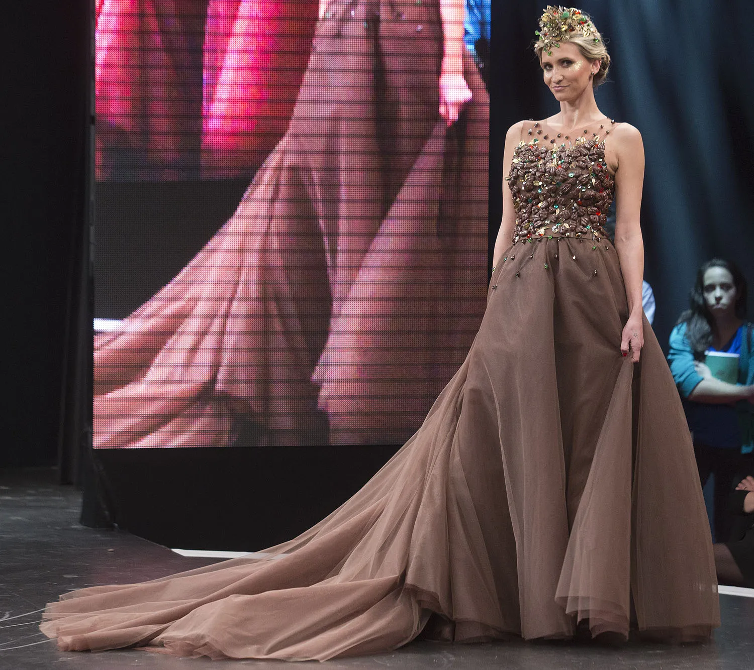 Former professional tennis player Tatiana Golovin presents a chocolate studded dress during a show as part of the chocolate fair in Paris, Tuesday, October 27, 2015. (Photo by Jacques Brinon/AP Photo)