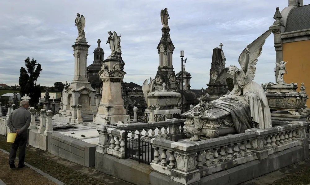 A man looks the pantheon of the Marquesa de San Juan de Nieva, chosen as the best tomb sculpture of Spain in a Spanish magazine this week, in the municipal cemetery of La Carriona in Aviles, northern Spain, October 29, 2015. (Photo by Eloy Alonso/Reuters)