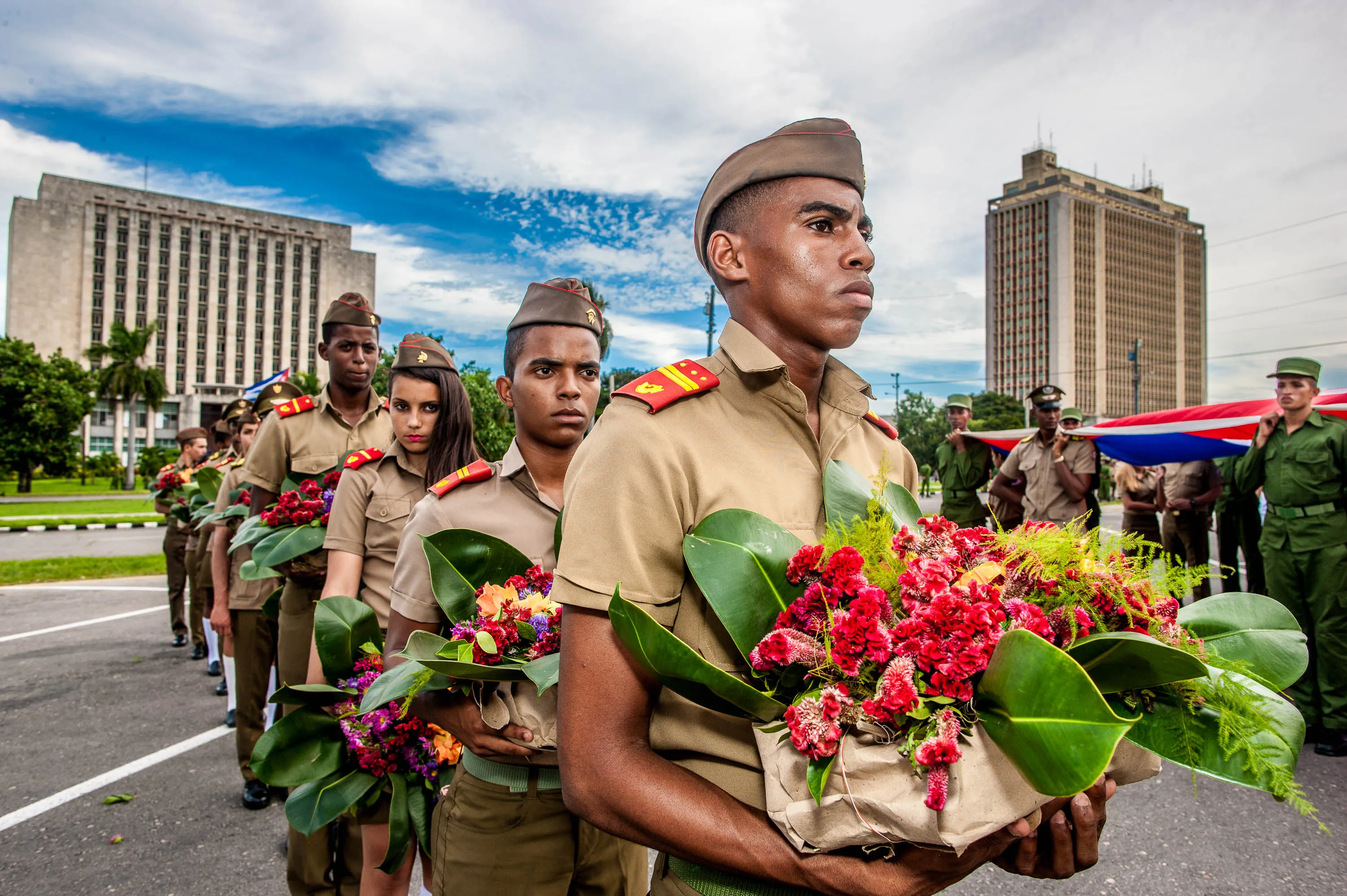 Military school cadets take part in a ceremony commemorating the 56th anniversary of the death of Camilo Cienfuegos who, along with Fidel Castro and Che Guevara, was a chief commander of the Cuban revolution in Havana, Cuba on October 28, 2015. (Photo by Xinhua/REX Shutterstock)