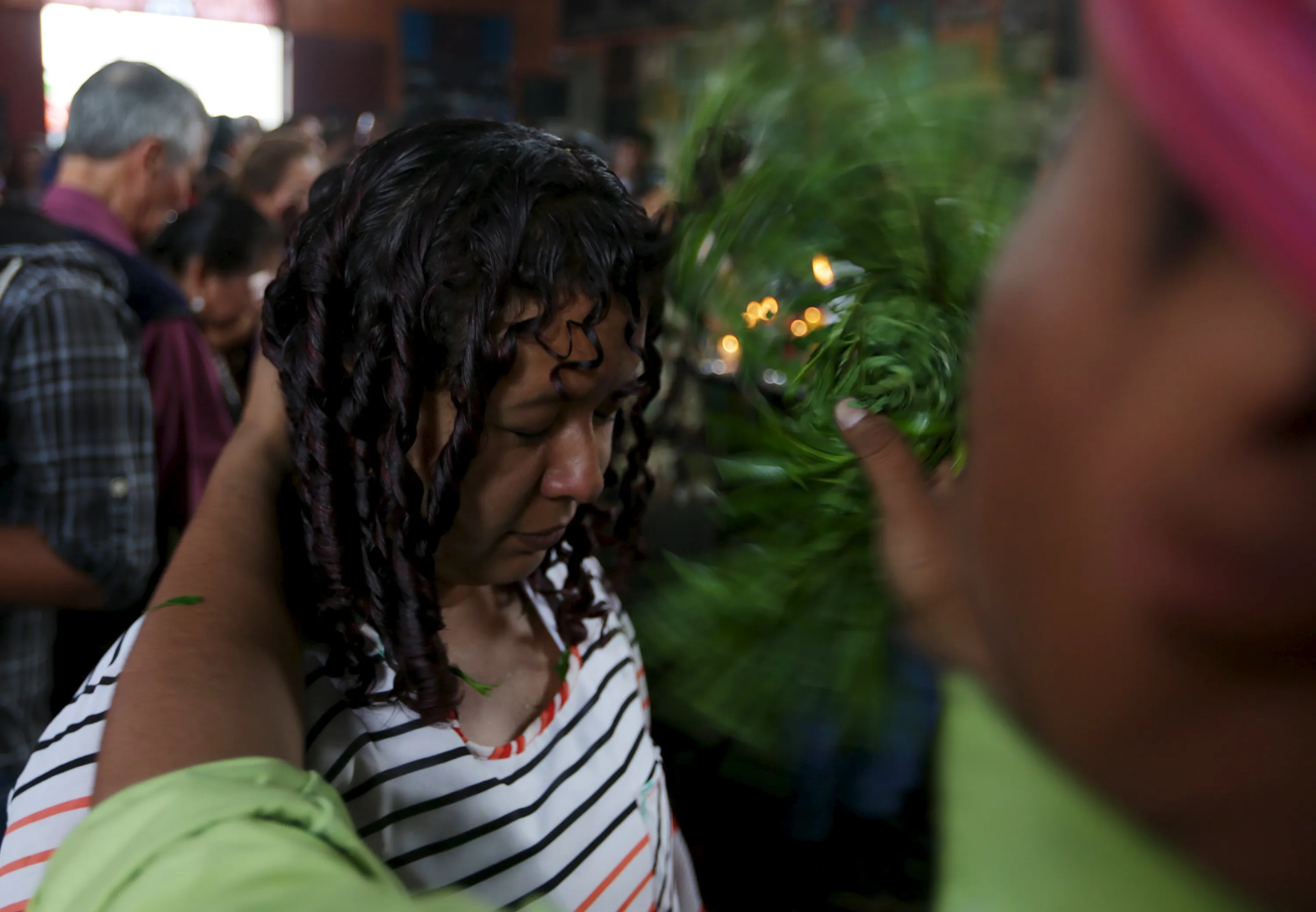 A woman receives a traditional cleansing in the church of San Simon in Iztapa, Chimaltenango, Guatemala, October 28, 2015. (Photo by Jorge Dan Lopez/Reuters)