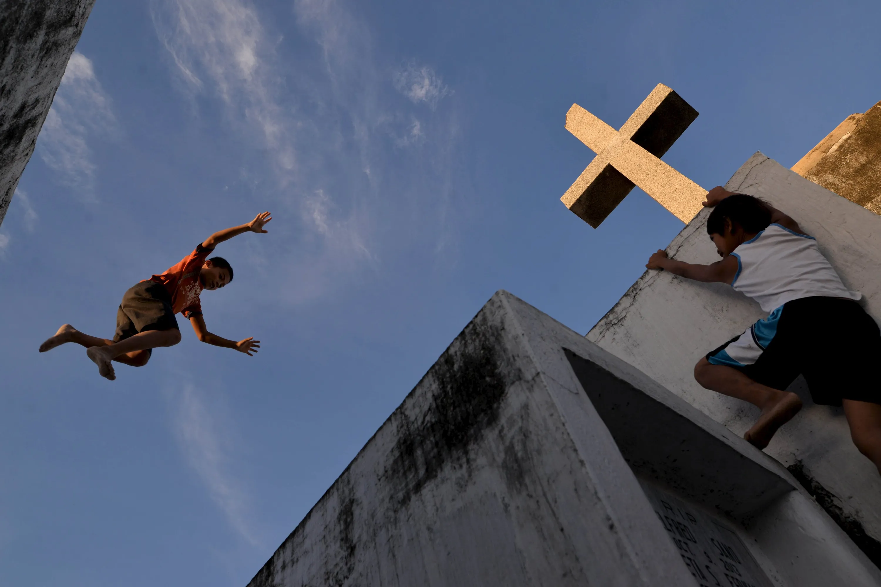 Children play alongside tombs inside the municipal cemetery in Navotas city, north of Manila October 29, 2015. (Photo by Ezra Acayan/Reuters)