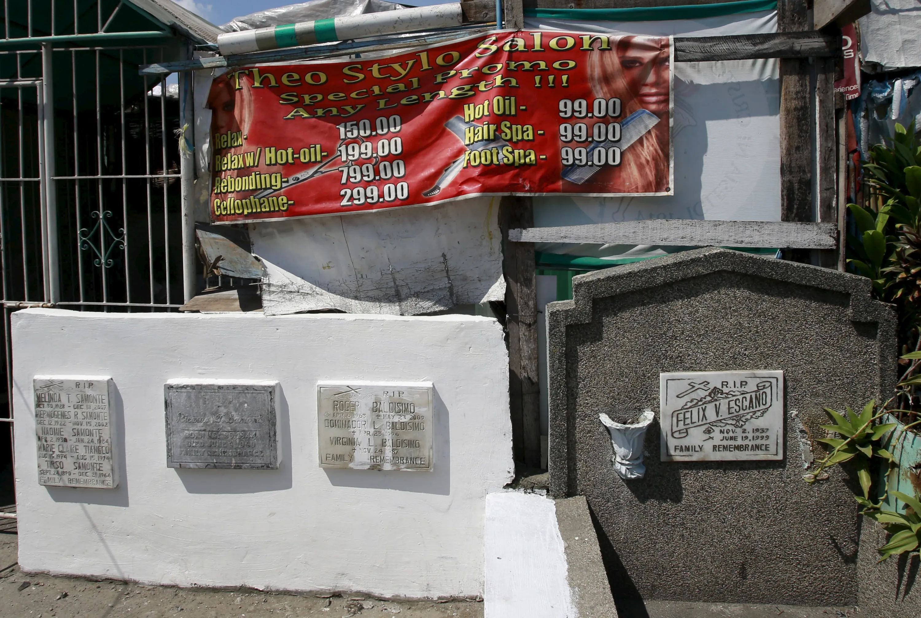 An advertising banner for a salon is placed on a makeshift house inside the Manila South Public Cemetery in Pasay City, metro Manila October 30, 2015. (Photo by Romeo Ranoco/Reuters)