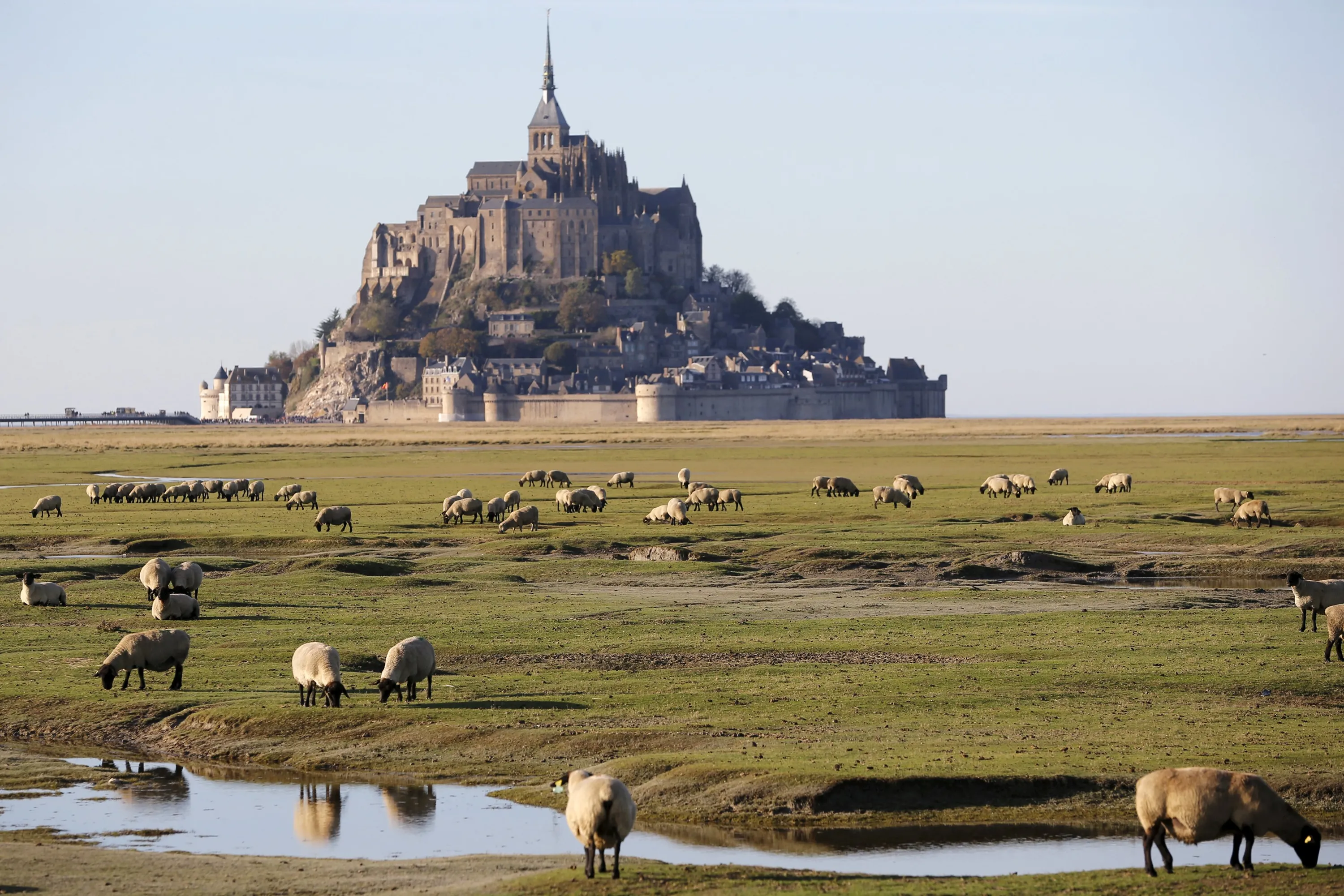 Sheep graze in a marsh field in Le Mont-Saint-Michel, France, October 31, 2015. (Photo by Stephane Mahe/Reuters)