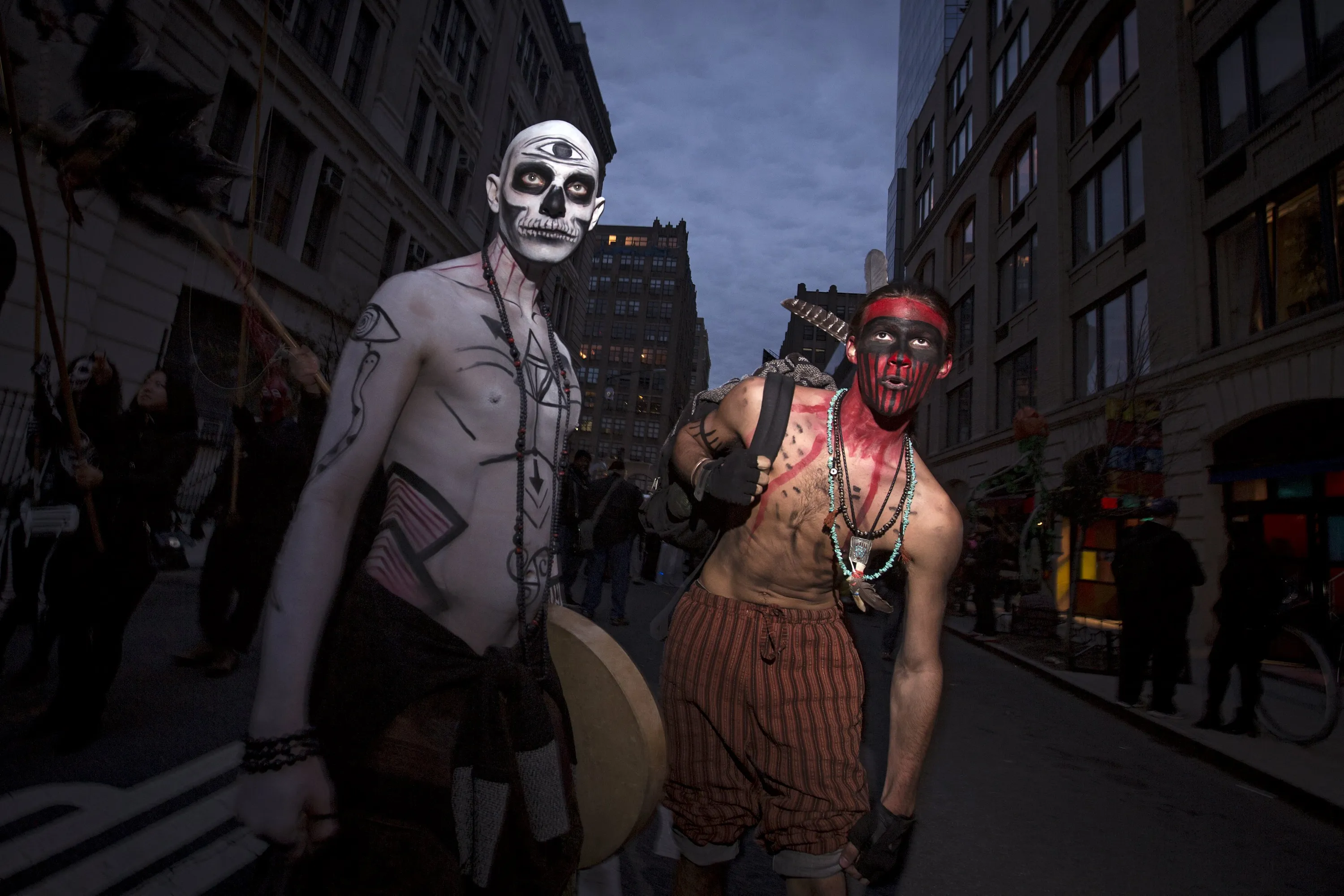 Revelers take part in the Greenwich Village Halloween Parade in the Manhattan borough of New York, October 31, 2015. (Photo by Carlo Allegri/Reuters)