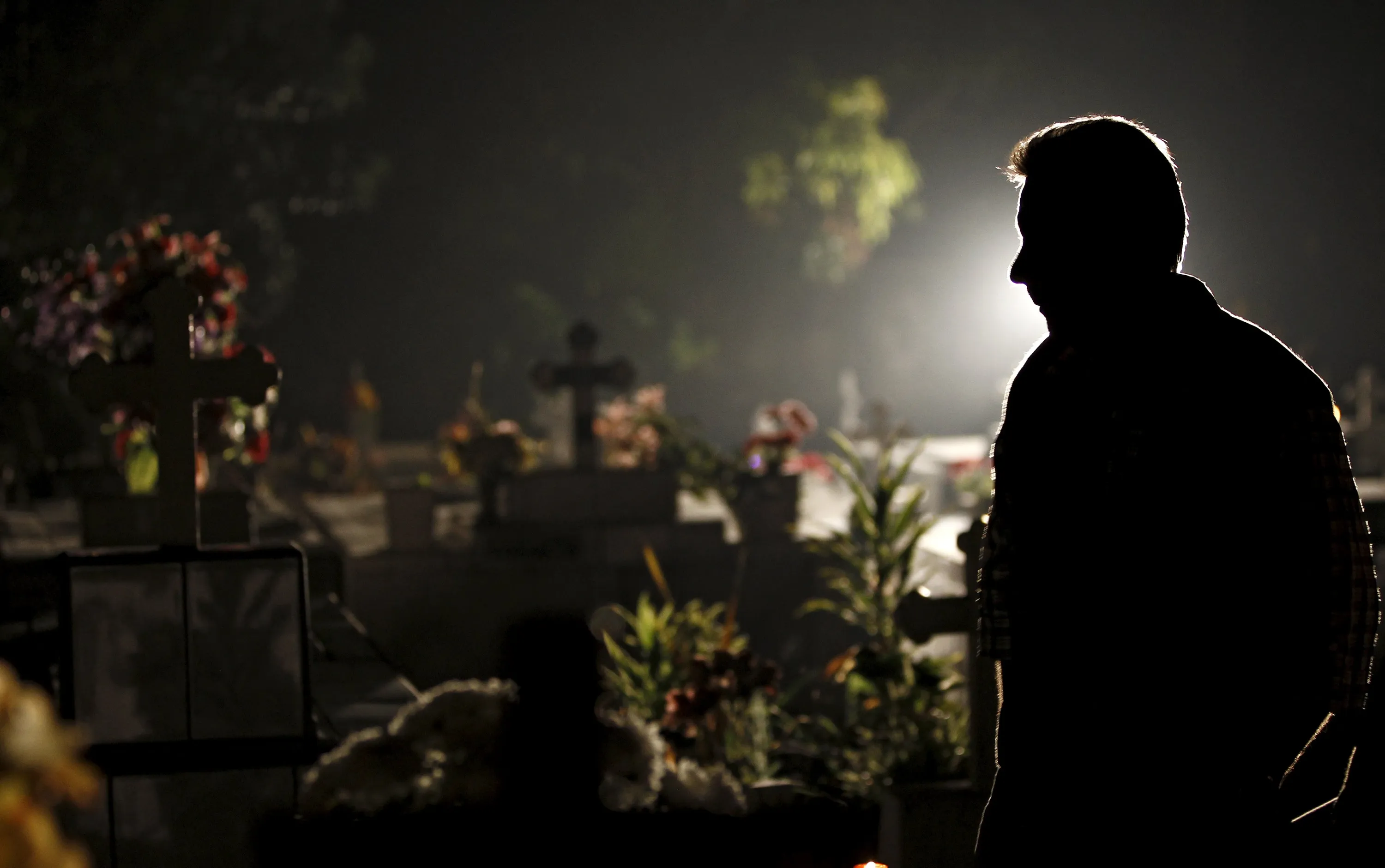 A man stands near graves as he takes part in a vigil at a cemetery in Barva de Heredia, Costa Rica October 31, 2015. (Photo by Juan Carlos Ulate/Reuters)