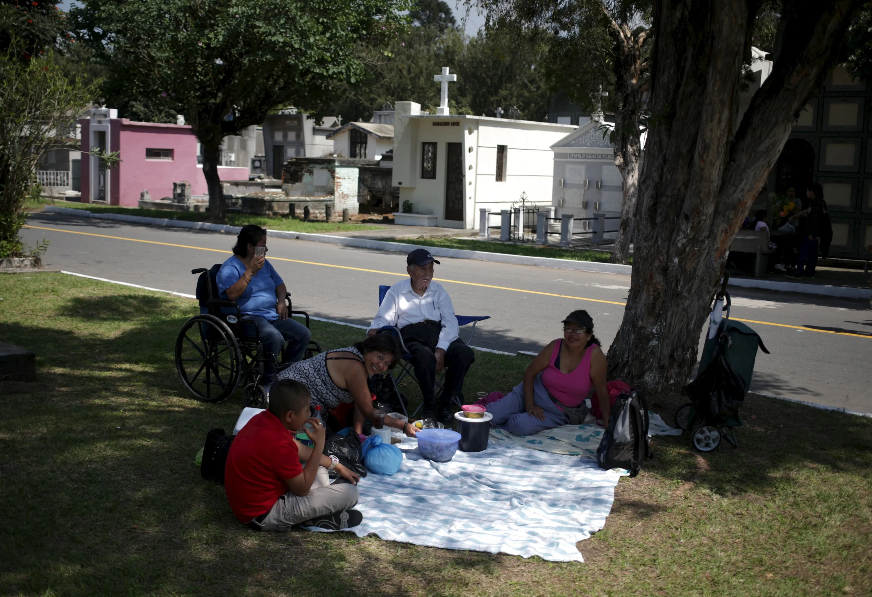 A family enjoys a picnic at the General Cemetery in Guatemala City, October 31, 2015. (Photo by Jorge Dan Lopez/Reuters)