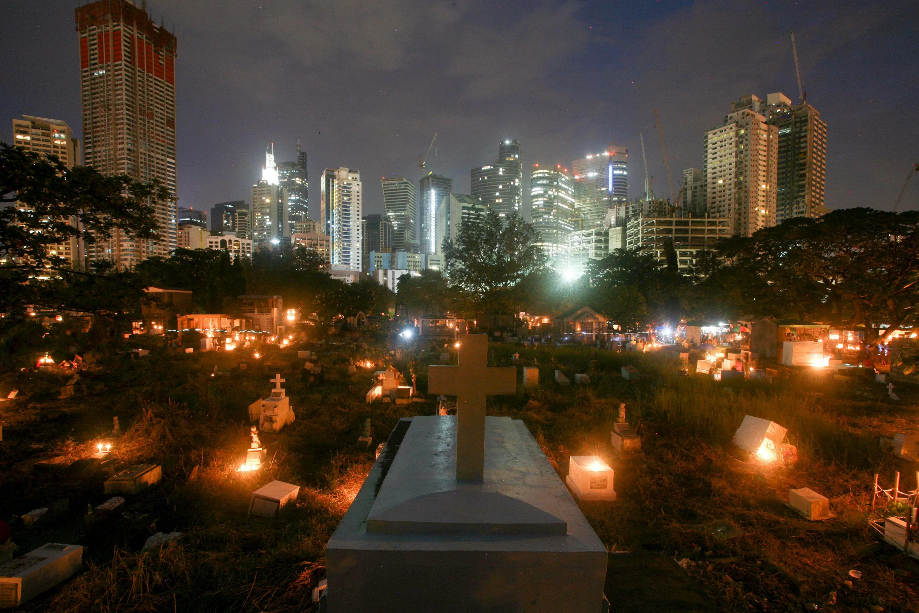 Candles illuminate graves inside a public cemetery in Makati's financial district of Manila November 1, 2015. (Photo by Janis Alano/Reuters)