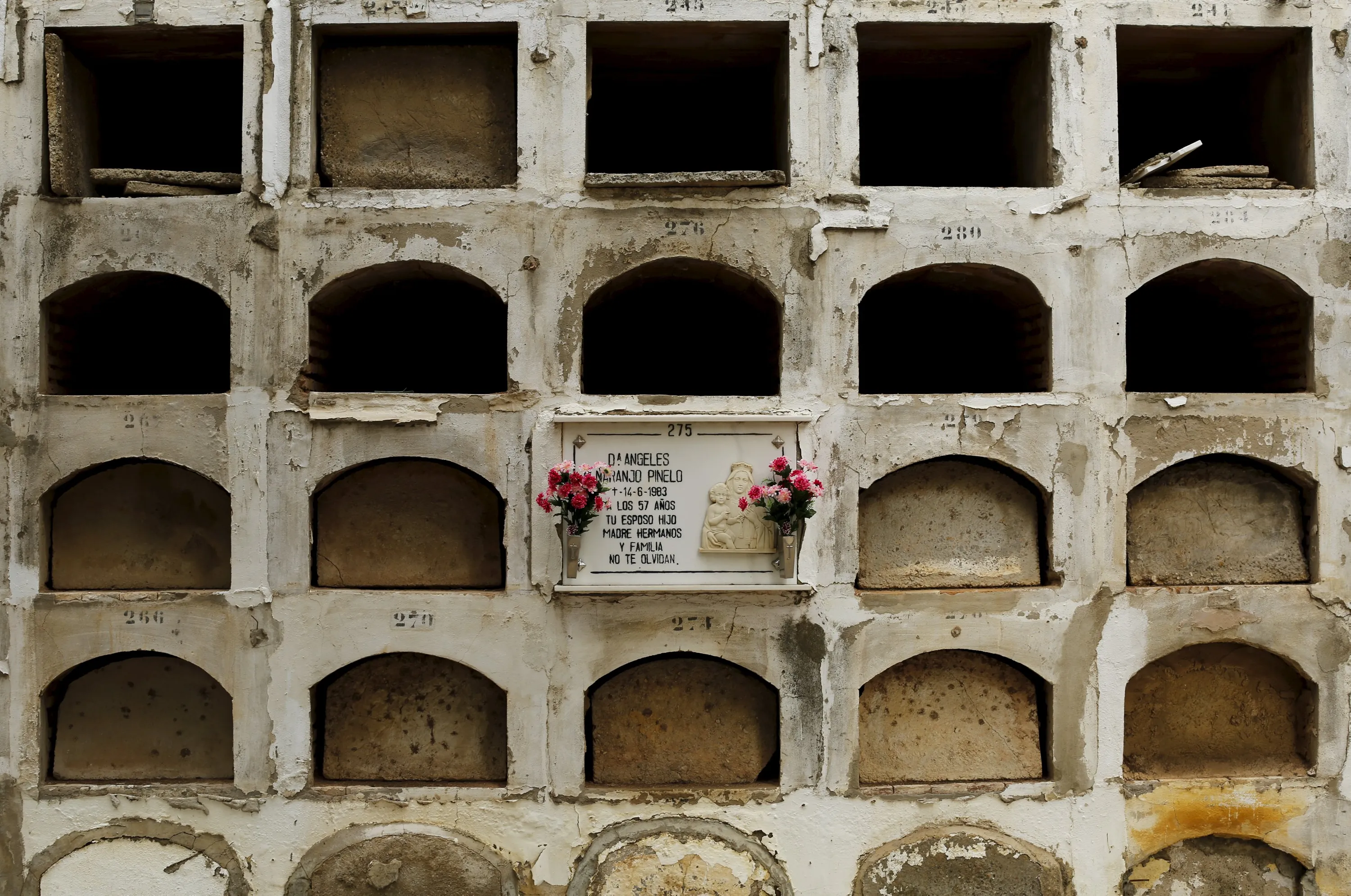 A grave is pictured among empty graves during All Saints Day at the cemetery of San Fernando in the Andalusian capital of Seville, November 1, 2015. (Photo by Marcelo del Pozo/Reuters)