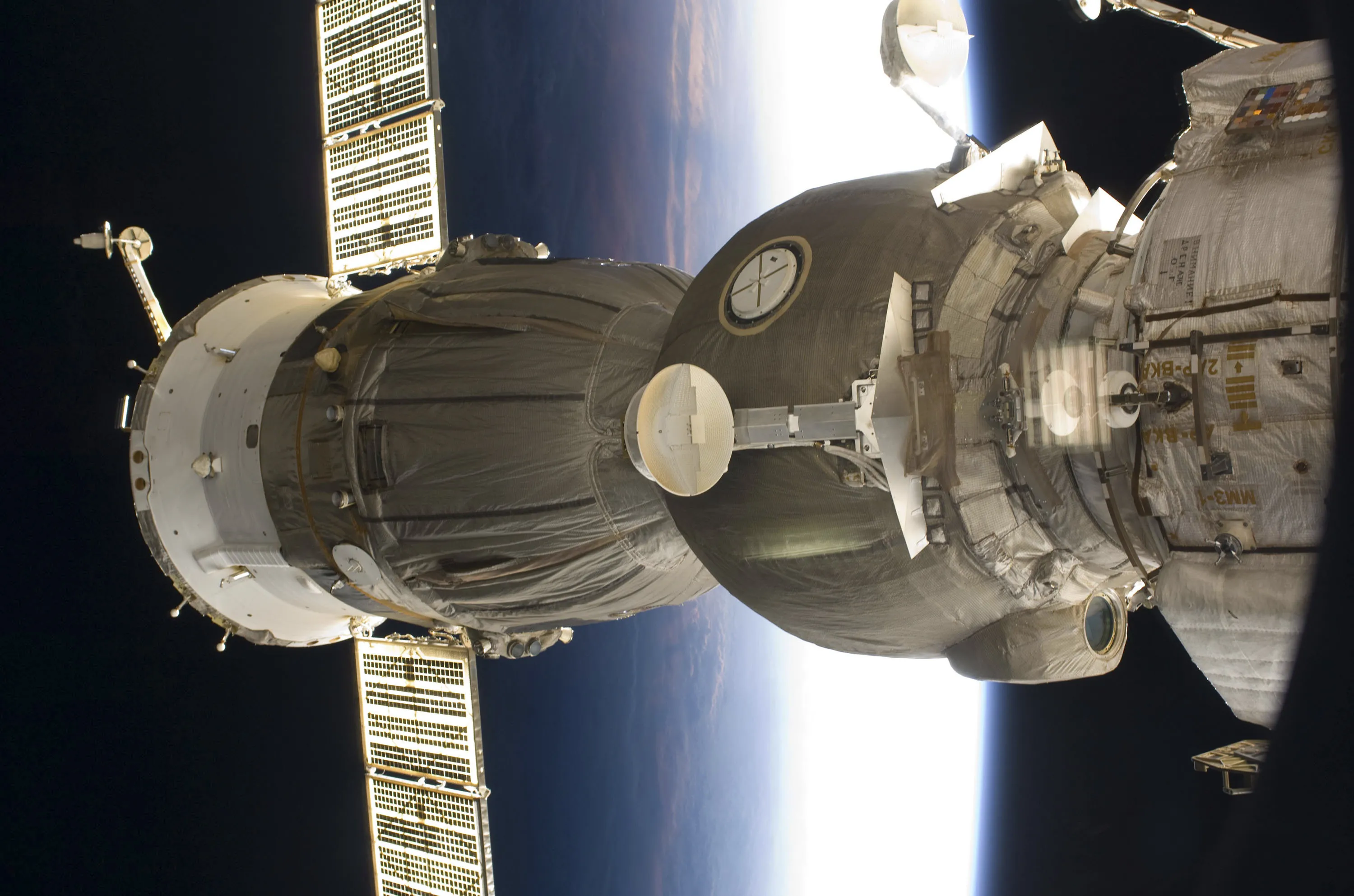 One of two Soyuz spacecrafts docked with the International Space Station on July 25, 2009. (Photo by Reuters/NASA)