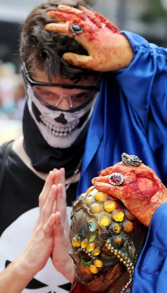 Revellers with their bodies and faces painted attend the "Zombie Walk" parade in Sao Paulo, Brazil, November 2, 2015. (Photo by Paulo Whitaker/Reuters)