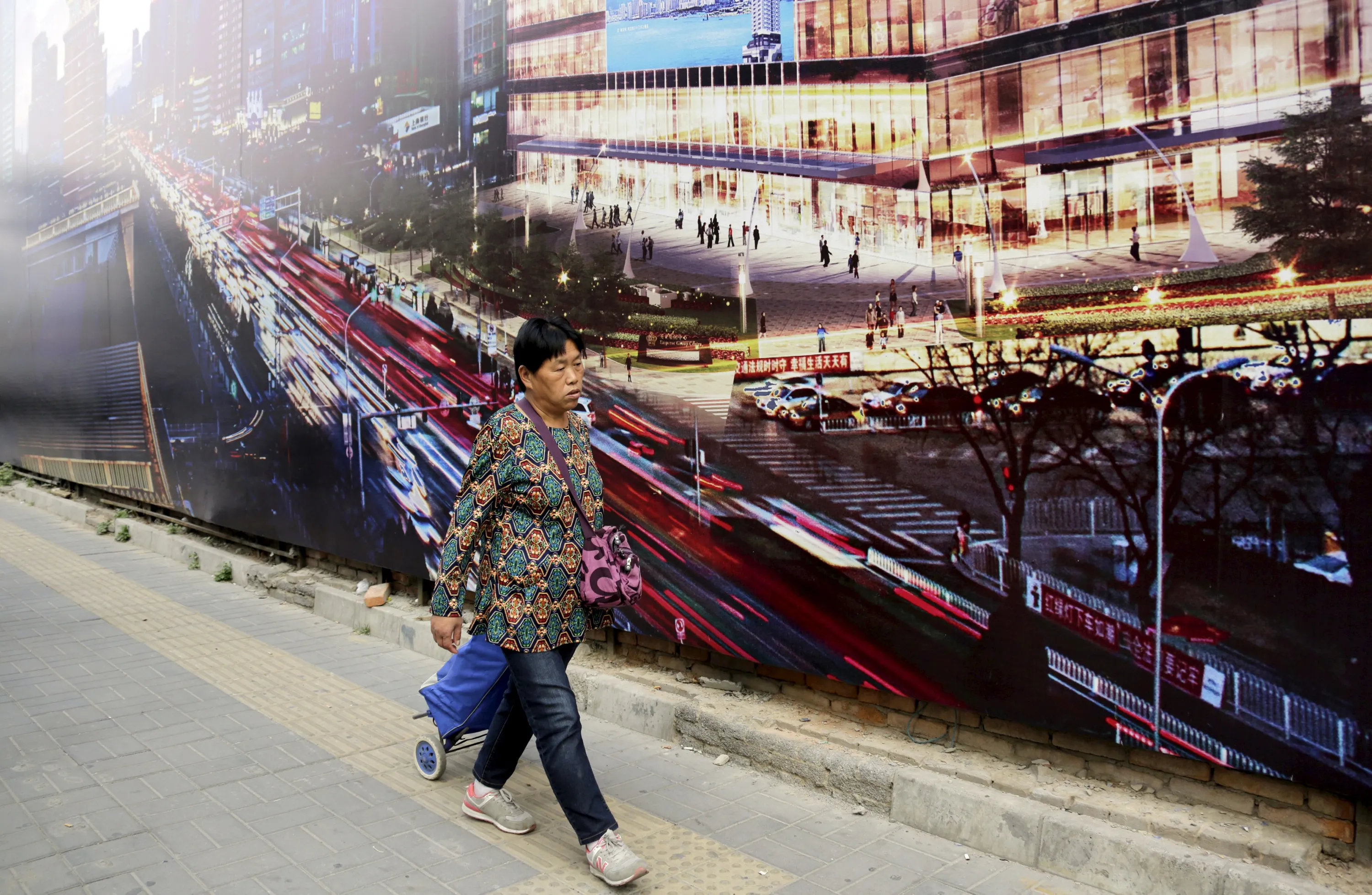 A woman walks past the advertising poster of an office building under construction in central Beijing, China, October 16, 2015. (Photo by Jason Lee/Reuters)