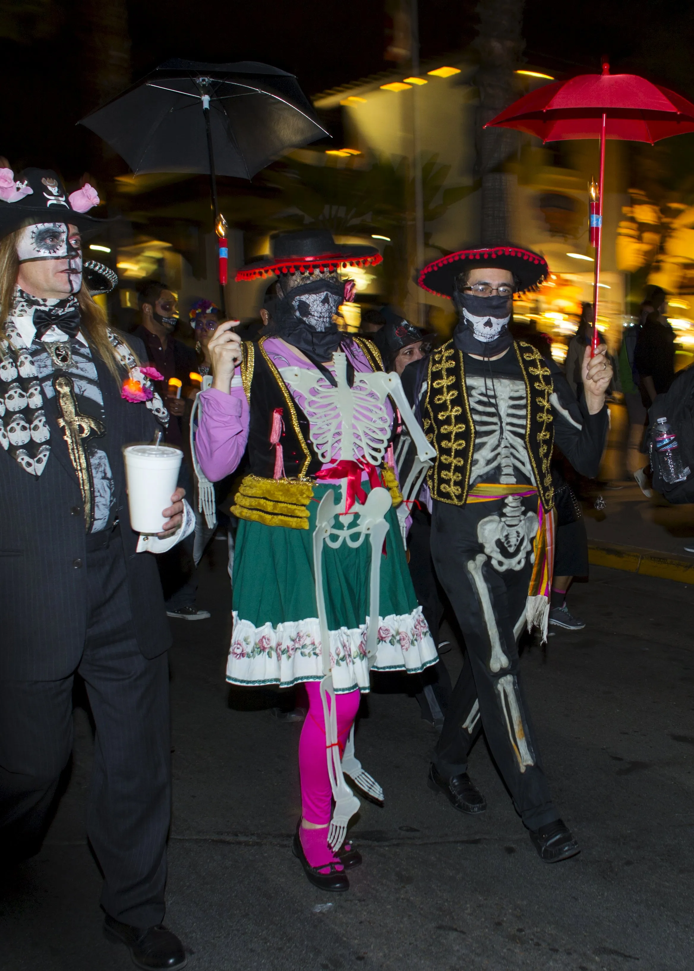 Participants march during a candlelight procession at the end of a three-day "Day of The Dead" (Dia de los Muertos) celebration, which saw hundreds walk to El Campo Santo cemetery in Old Town San Diego, California, November 2, 2015. (Photo by Mike Blake/Reuters)