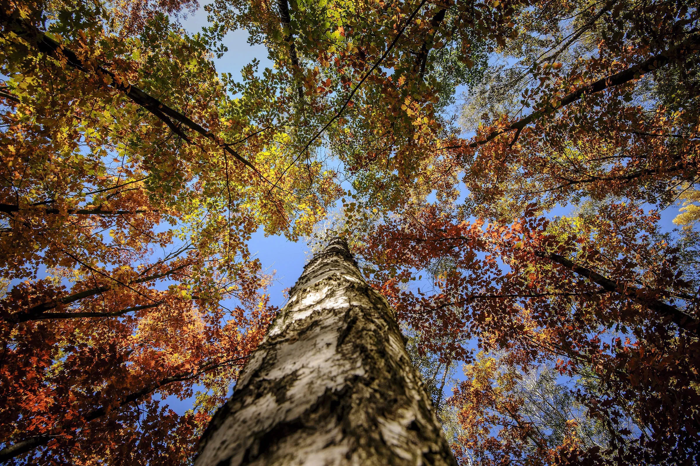 Autumn foilage of a deciduous tree near Nyiradony, 260 kms east of Budapest, Hungary, 27 October 2015. the phenomenon of leaves changing colors in autumn occurs when the green colored Chlorophyll is detracted from the leaves into the tree's roots because of lower temperatures and less sunlight, leaving only yellow and orange pigments visible. (Photo by Zsolt Czegledi/EPA)