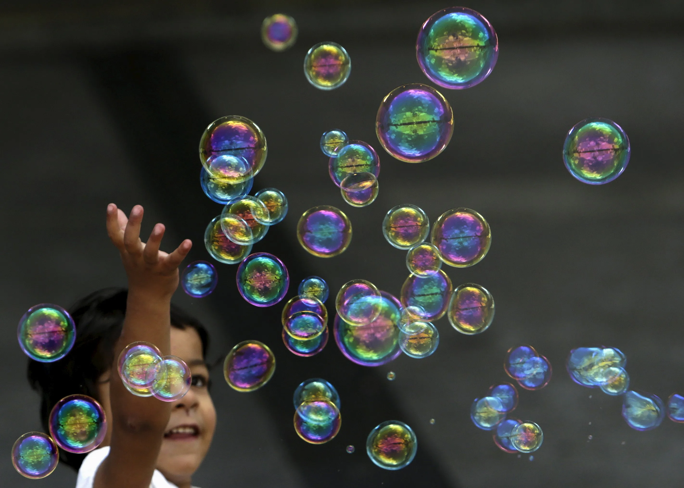 A migrant child plays with bubbles at Keleti railway station in Budapest, Hungary, September 6, 2015. (Photo by David W. Cerny/Reuters)