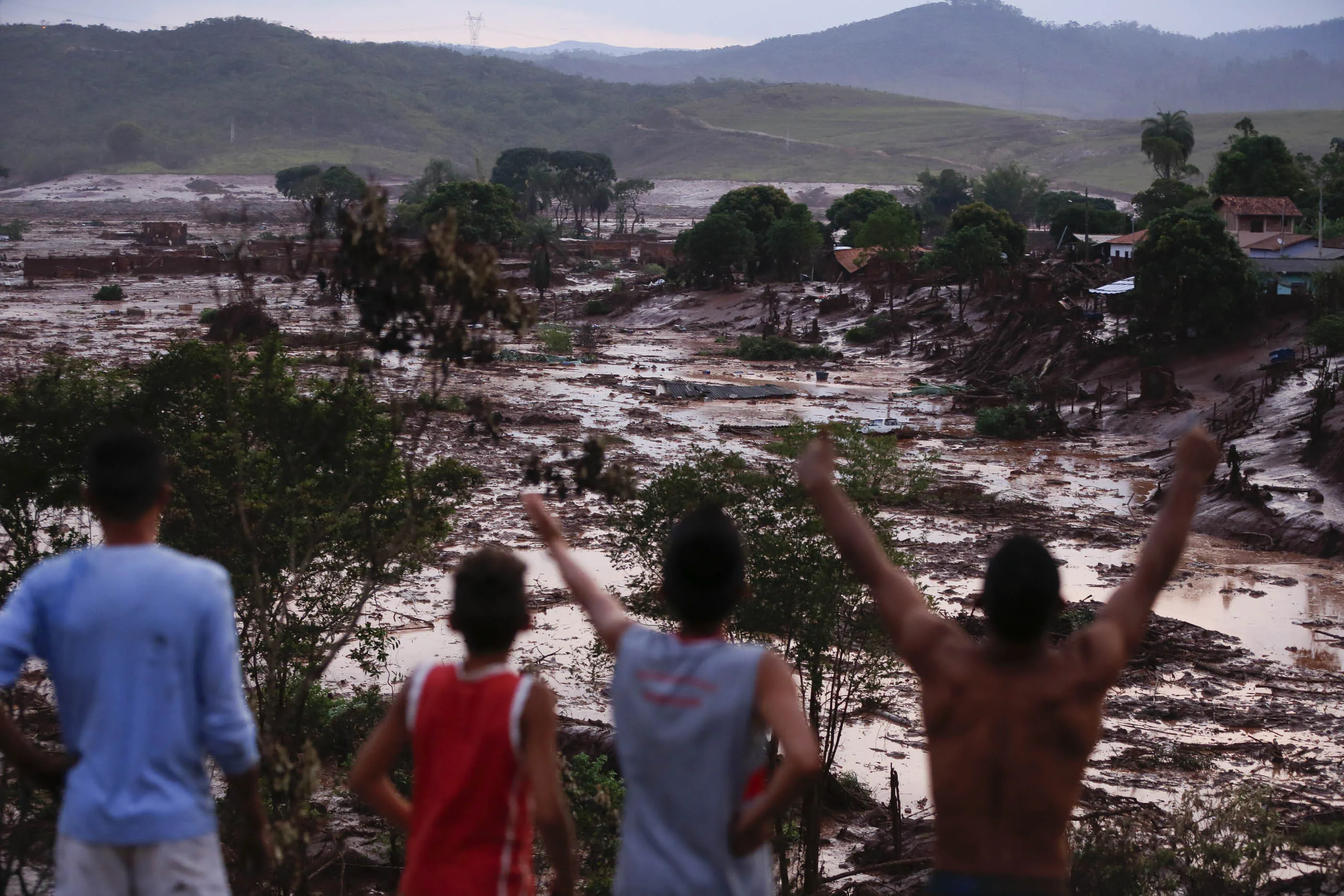 Photo taken on November 5, 2015 shows flood in Bento Rodrigues, a town in the southeastern Brazilian state of Minas Gerais, after a dam at a mining waste site burst early Thursday. An iron ore tailings dam in the southeast Brazilian state of Minas Gerais collapsed Thursday, killing at least 15 people, according to local media reports. (Photo by Agencia Estado/Xinhua Press/Corbis)