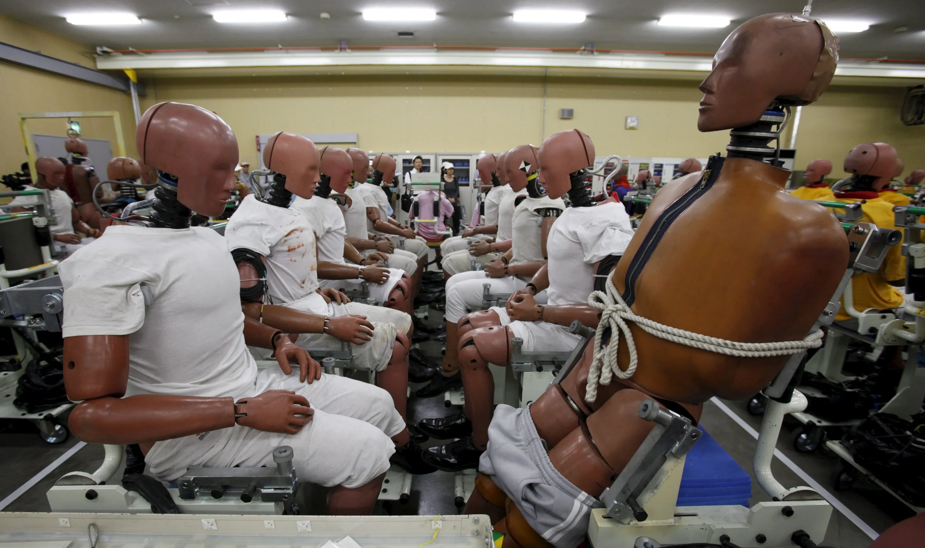 Toyota Motor Corp's crash-test dummies are pictured during the Toyota Safety Technology Media Tour at the company's Higashifuji Technical Center in Susono, west of Tokyo, in this July 21, 2011 file photo. (Photo by Toru Hanai/Reuters)