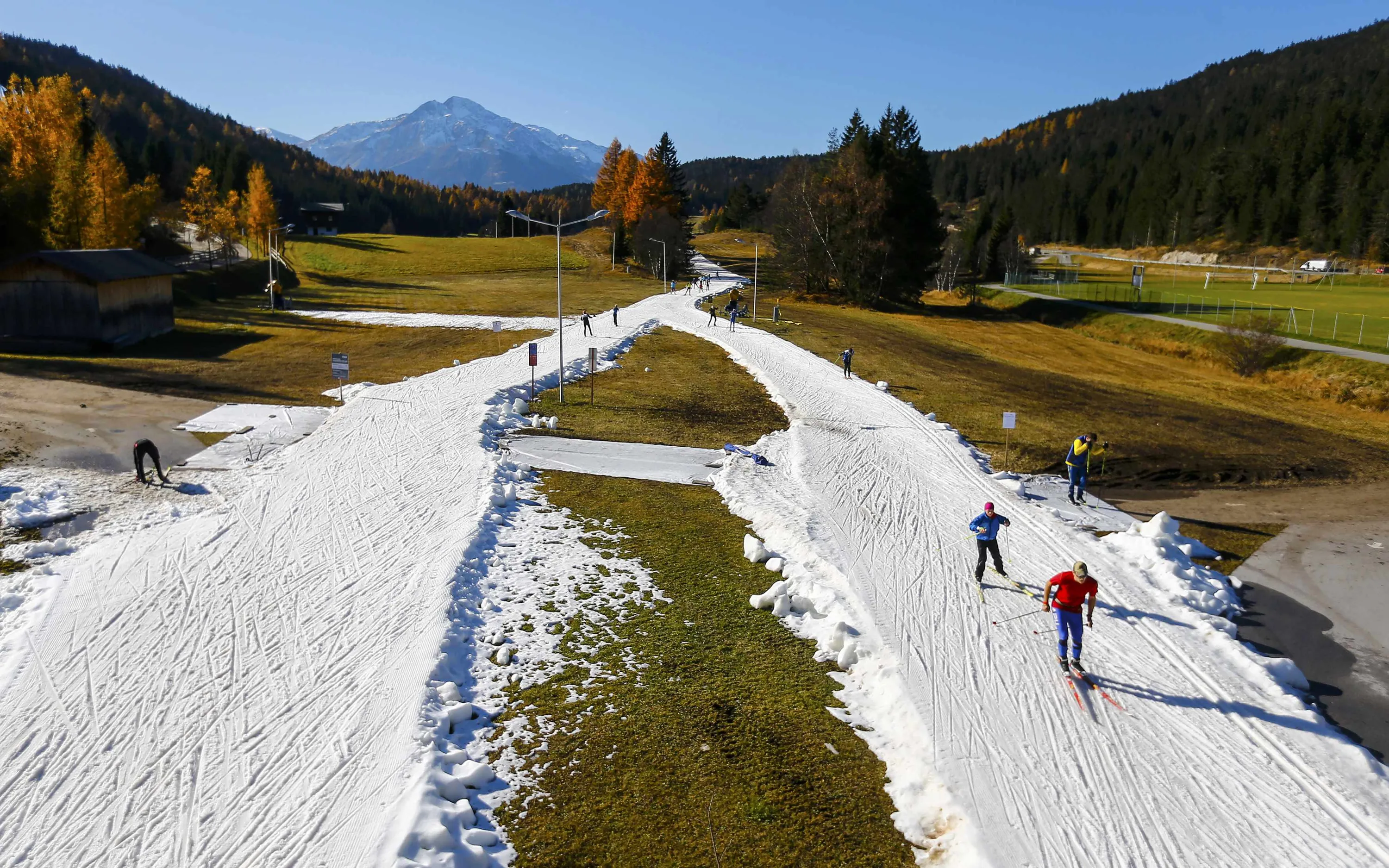 Cross country skiers ski on an artificial slope during a sunny autumn day in the Western Austrian village of Seefeld, Austria November 5, 2015. (Photo by Dominic Ebenbichler/Reuters)