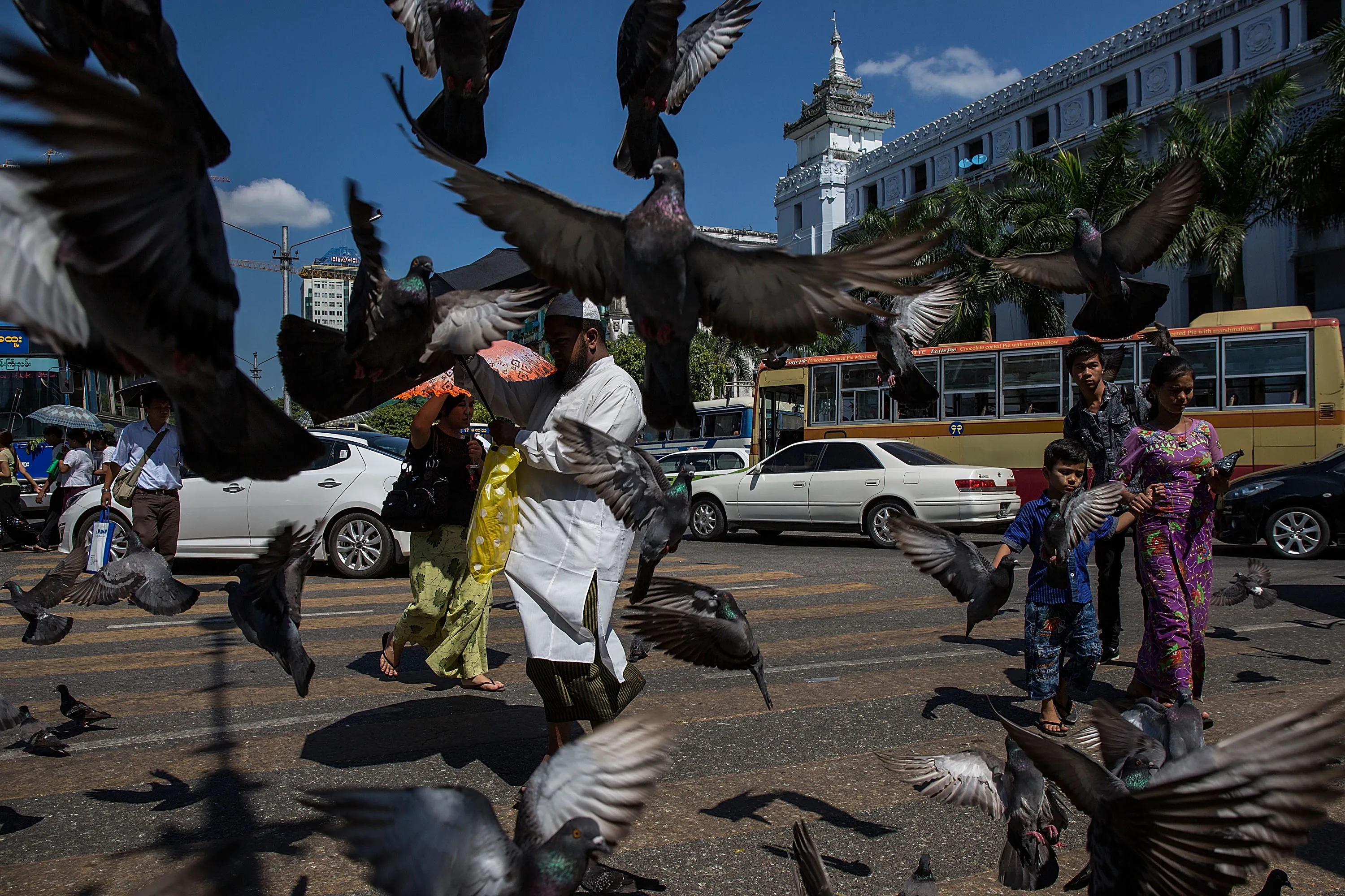 Pigeons fly over the sky in downtown ahead of the landmark November 8 elections on November 6, 2015 in Yangon, Burma. More than 30 million people will vote on Sunday in what has been billed as Myanmar's first free and fair election, a poll which will determine the scope of its democratic transition. (Photo by Lam Yik Fei/Getty Images)
