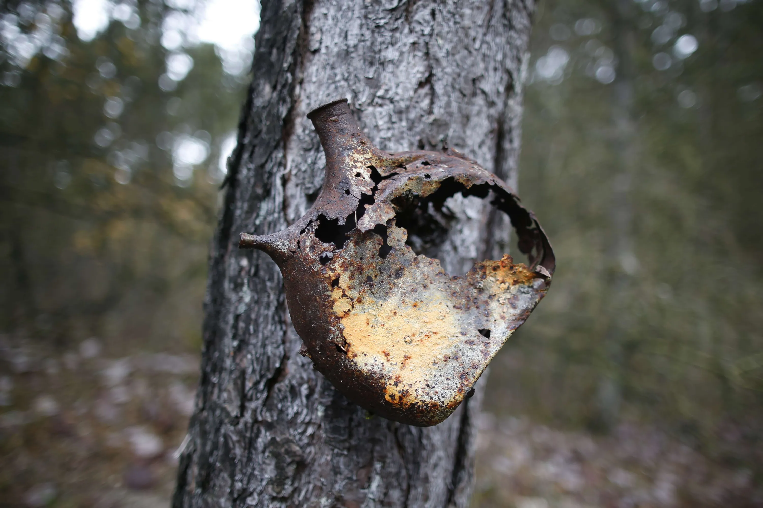 A rusty French flask hangs on a tree to indicate the way to the battlefield grave memorial of French WWI soldier Edouard Marius Ivaldi in Champagne, eastern France, November 3, 2015. (Photo by Charles Platiau/Reuters)