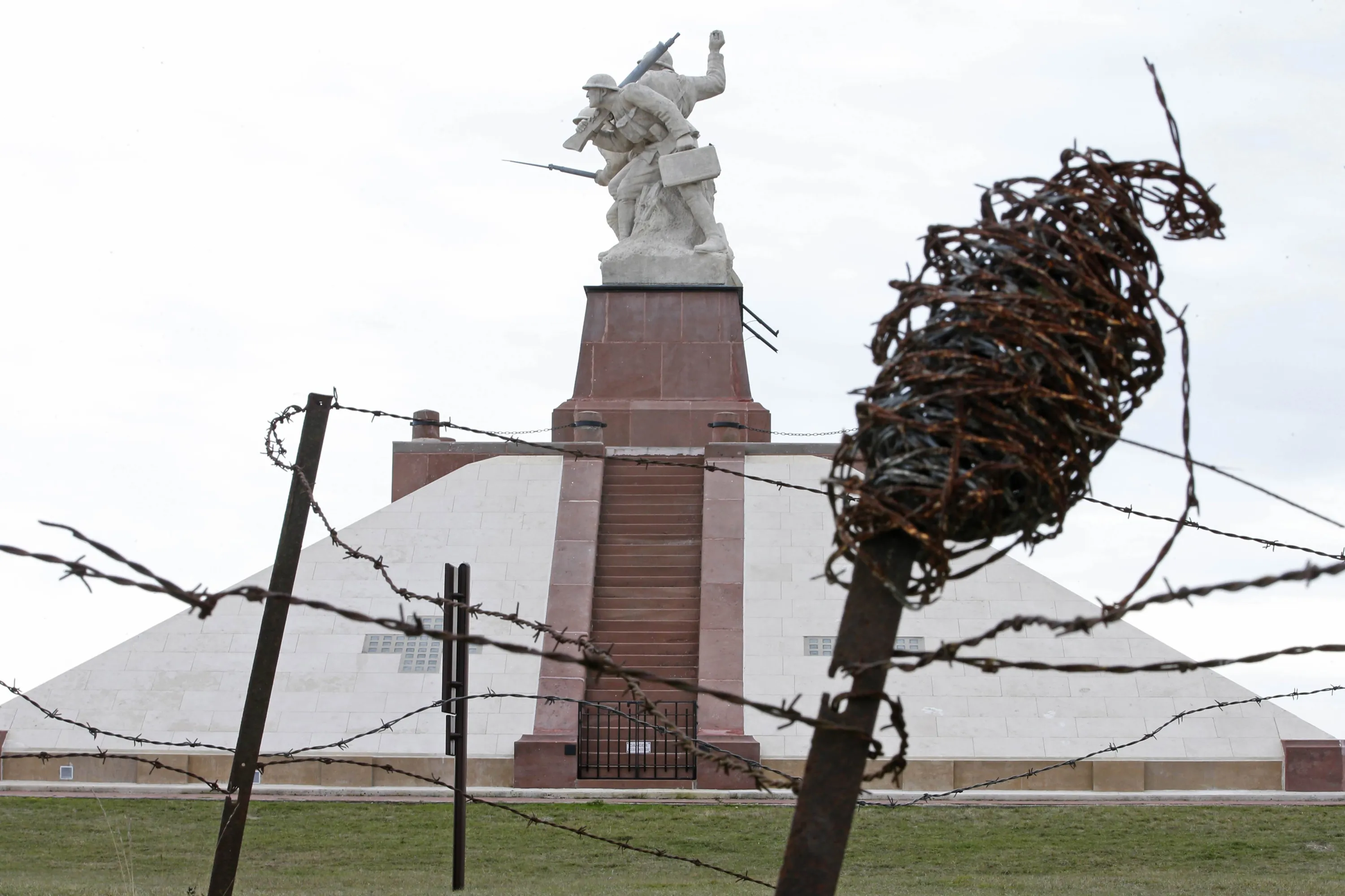 WWI barbed wire is seen near the Navarin monument, a pyramid inaugurated at Sommepy-Tahure in 1924 to pay tribute to World War I soldiers killed in Champagne, eastern France, November 3, 2015. (Photo by Charles Platiau/Reuters)