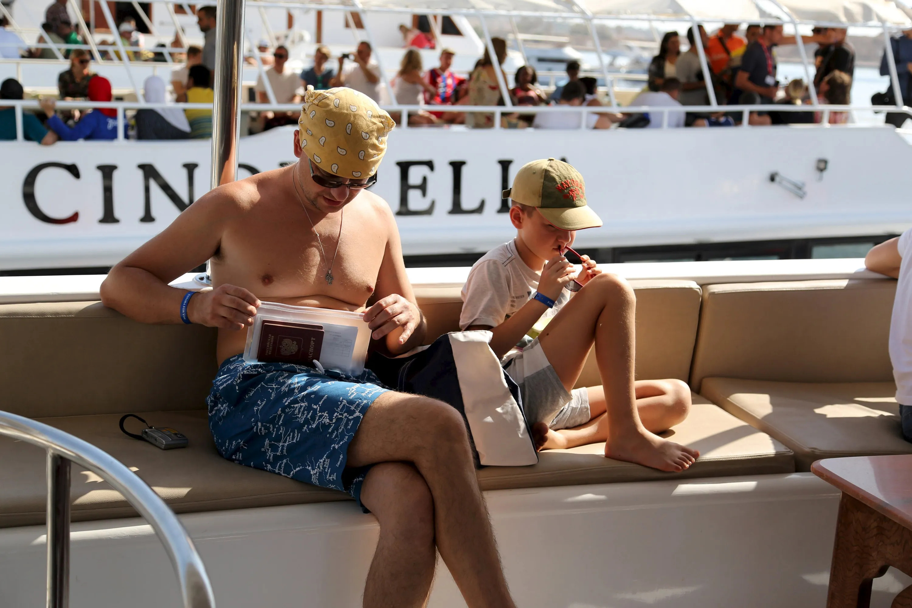 A Russian tourist checks his documents as he sits on a yacht for an excursion at a small port of the Red Sea resort of Sharm el-Sheikh, November 7, 2015. (Photo by Asmaa Waguih/Reuters)
