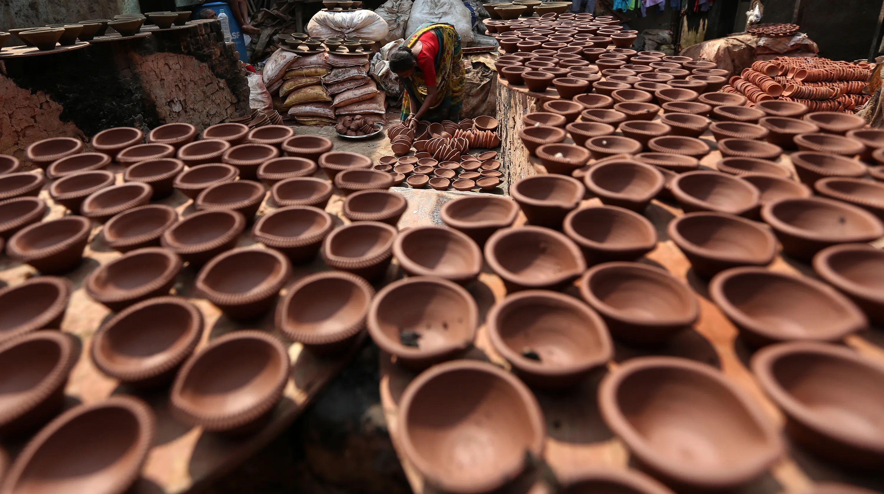 An Indian woman arranges an earthen lamp for the upcoming Diwali festival in Mumbai, India, Friday, October 30, 2015. Diya is a small earthen lamp primarily used during Diwali, the festival of lights. Also, known as 'deep', diya is traditionally made of clay. During Diwali, the earthen lamps are used for illuminating and decorate the entire home and premises, apart from aarti. The diya is filled with ghee or oil, which work as fuel for it. (Photo by Divyakant Solanki/EPA)