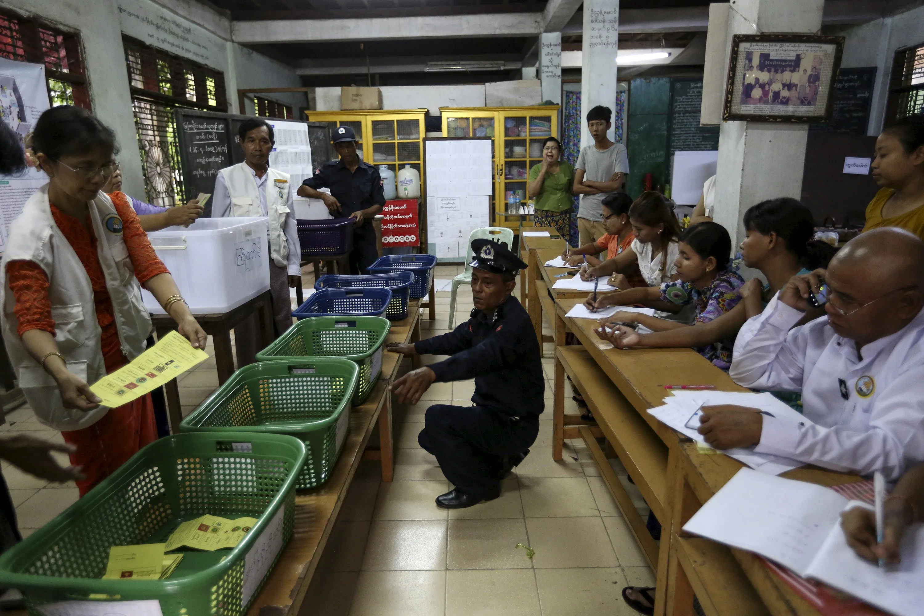 Volunteers count votes at a polling station during Myanmar general elections in central Yangon, November 8, 2015. (Photo by Soe Zeya Tun/Reuters)