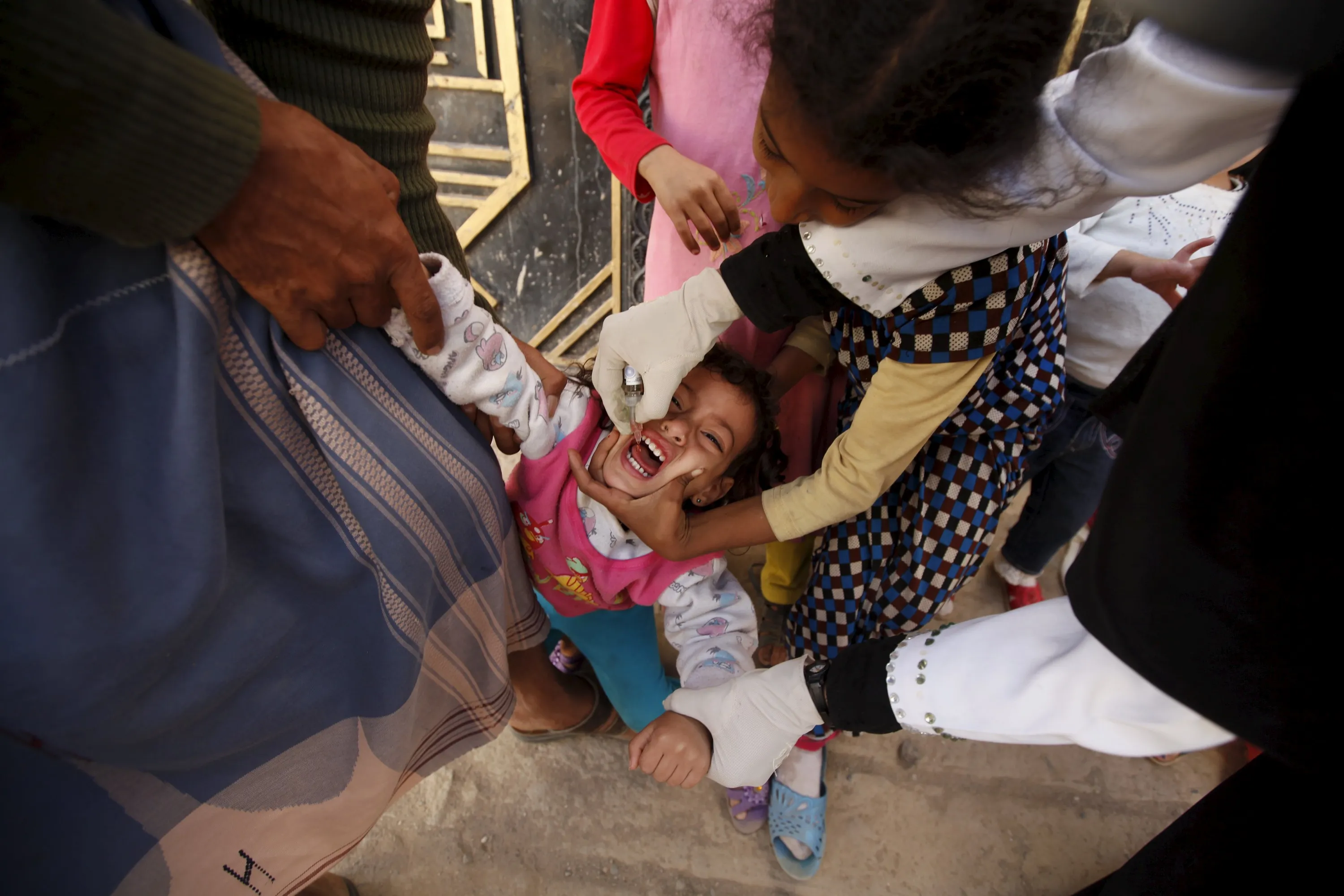 A girl receives polio vaccination outside her house in Yemen's capital Sanaa November 9, 2015. According to local media, Yemen started on Monday a three-day house-to-house polio vaccination campaign that aims to target around five million children under five years of age. (Photo by Khaled Abdullah/Reuters)