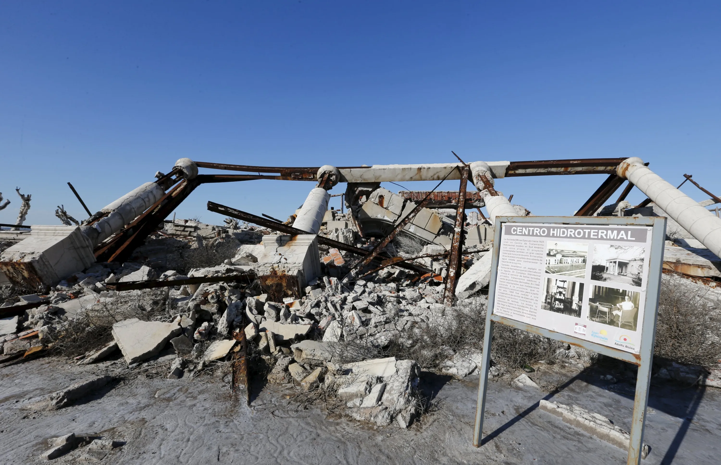 A picture taken in the 70s compares the place with the current state of a hydrothermal center in the onetime spa and resort town Epecuen, November 6, 2015. (Photo by Enrique Marcarian/Reuters)