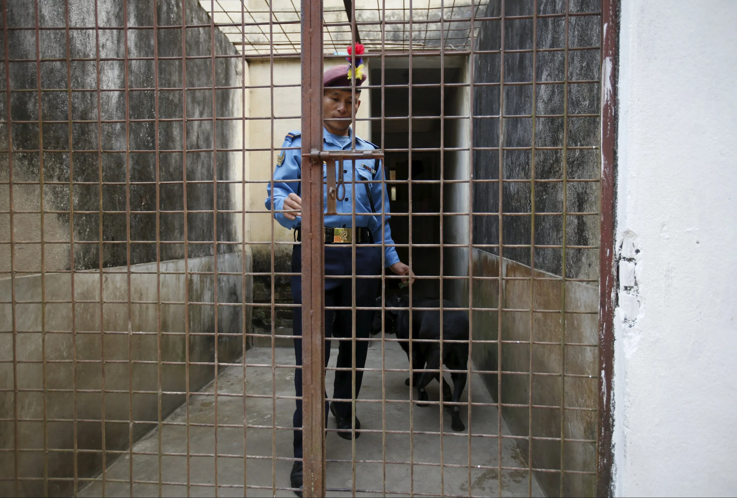 A police officer gets ready along with his dog for the dog festival as part of celebrations of Tihar at Central Police Dog Training School in Kathmandu, Nepal November 10, 2015. (Photo by Navesh Chitrakar/Reuters)