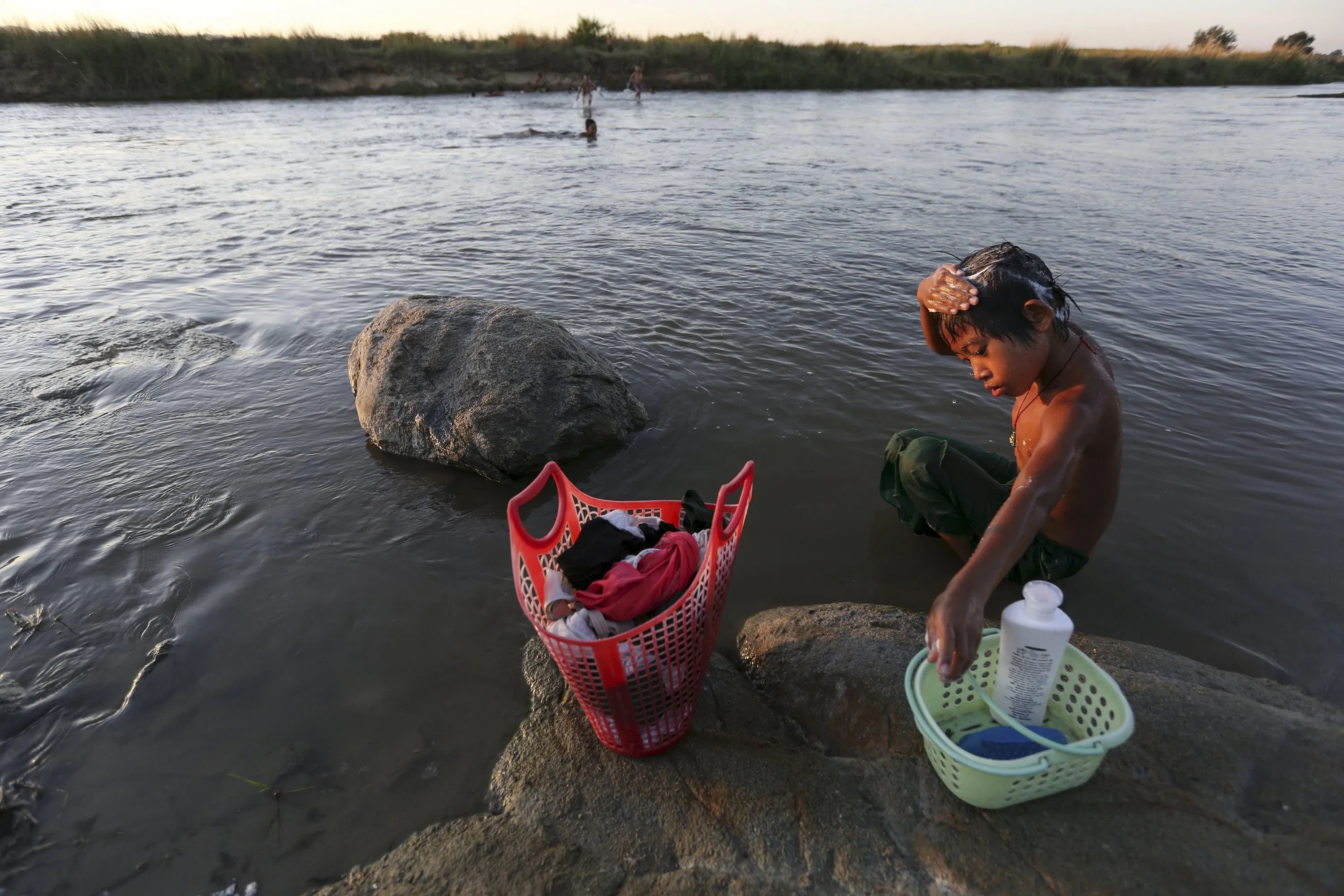 A boy takes a bath in a creek in Naypyitaw, Myanmar, November 14, 2015. (Photo by Soe Zeya Tun/Reuters)