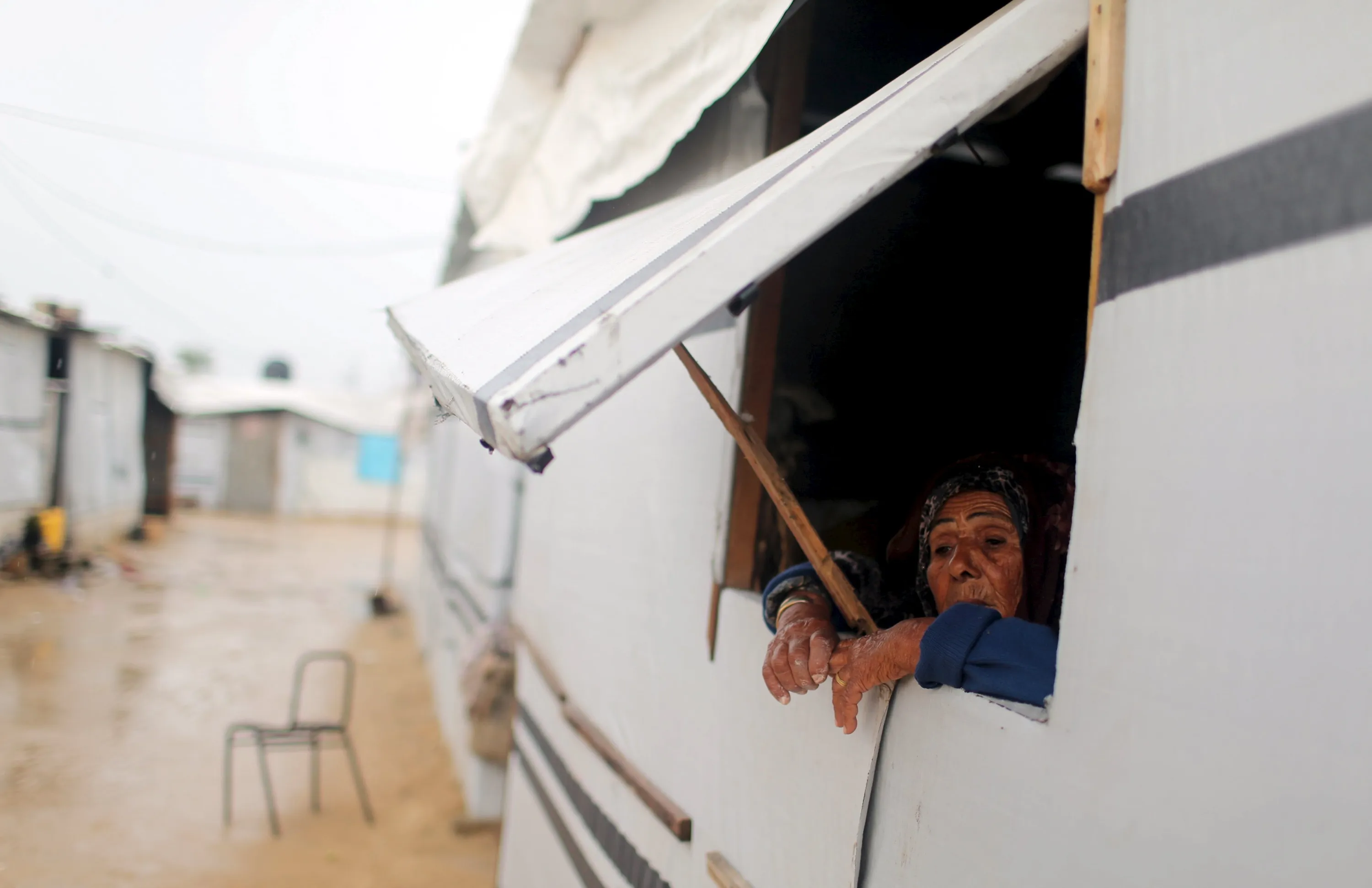 A Palestinian woman, whose house was destroyed by what witnesses said was Israeli shelling during a 50-day war in 2014, looks out her makeshift shelter in Khan Younis in the southern Gaza Strip November 17, 2015. (Photo by Ibraheem Abu Mustafa/Reuters)