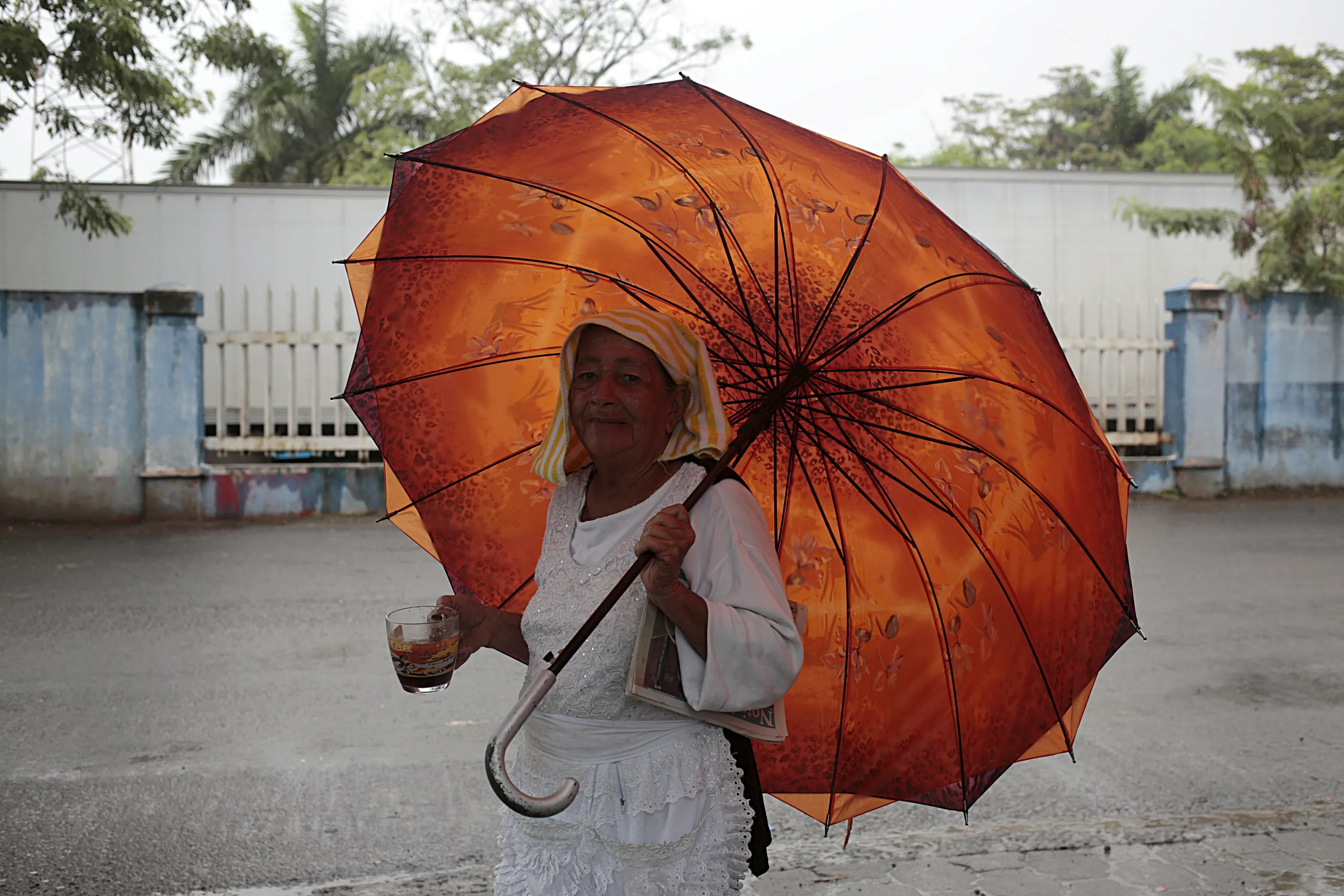 A woman holds an umbrella as she walks outside the customs building at the border between Nicaragua and Costa Rica November 16, 2015. (Photo by Oswaldo Rivas/Reuters)