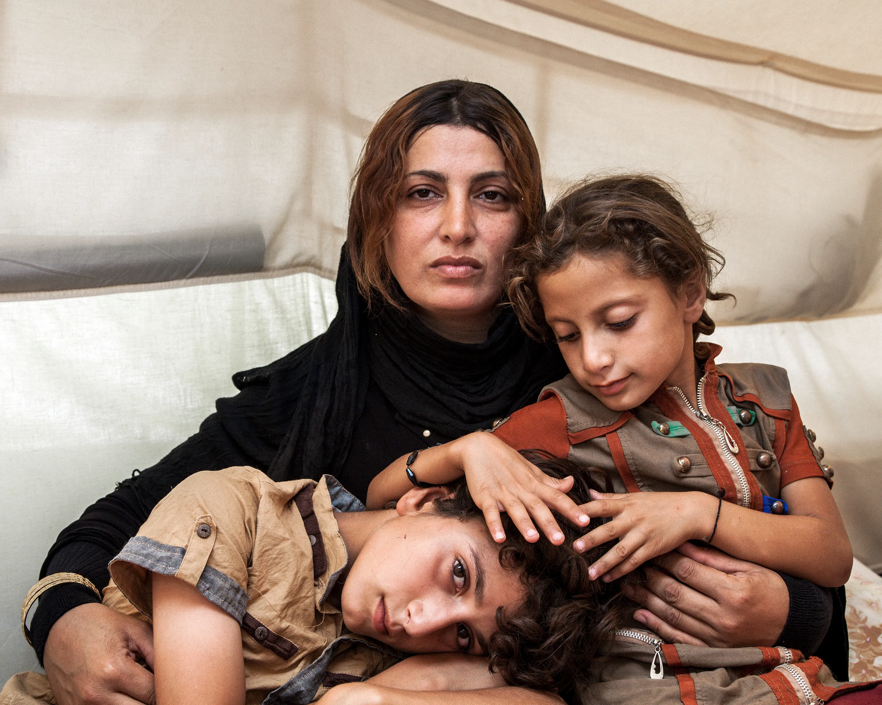 Amira and her Children by Ivor Prickett – £1,000 fourth prize winner. Prickett took this photograph in northern Iraq in September 2014 when he was working on an assignment for UNHCR. Prickett says: ‘I met Amira and her family in the tent they were living in at the Baharka camp near Erbil; they had fled their village near Mosul after Isis had taken control of the area. As they became more comfortable with me being there, they really started to express their closeness and became very tactile. It was a beautiful moment to witness in the midst of such a difficult situation’. (Photo by Ivor Prickett/Taylor Wessing Portrait Prize 2015)