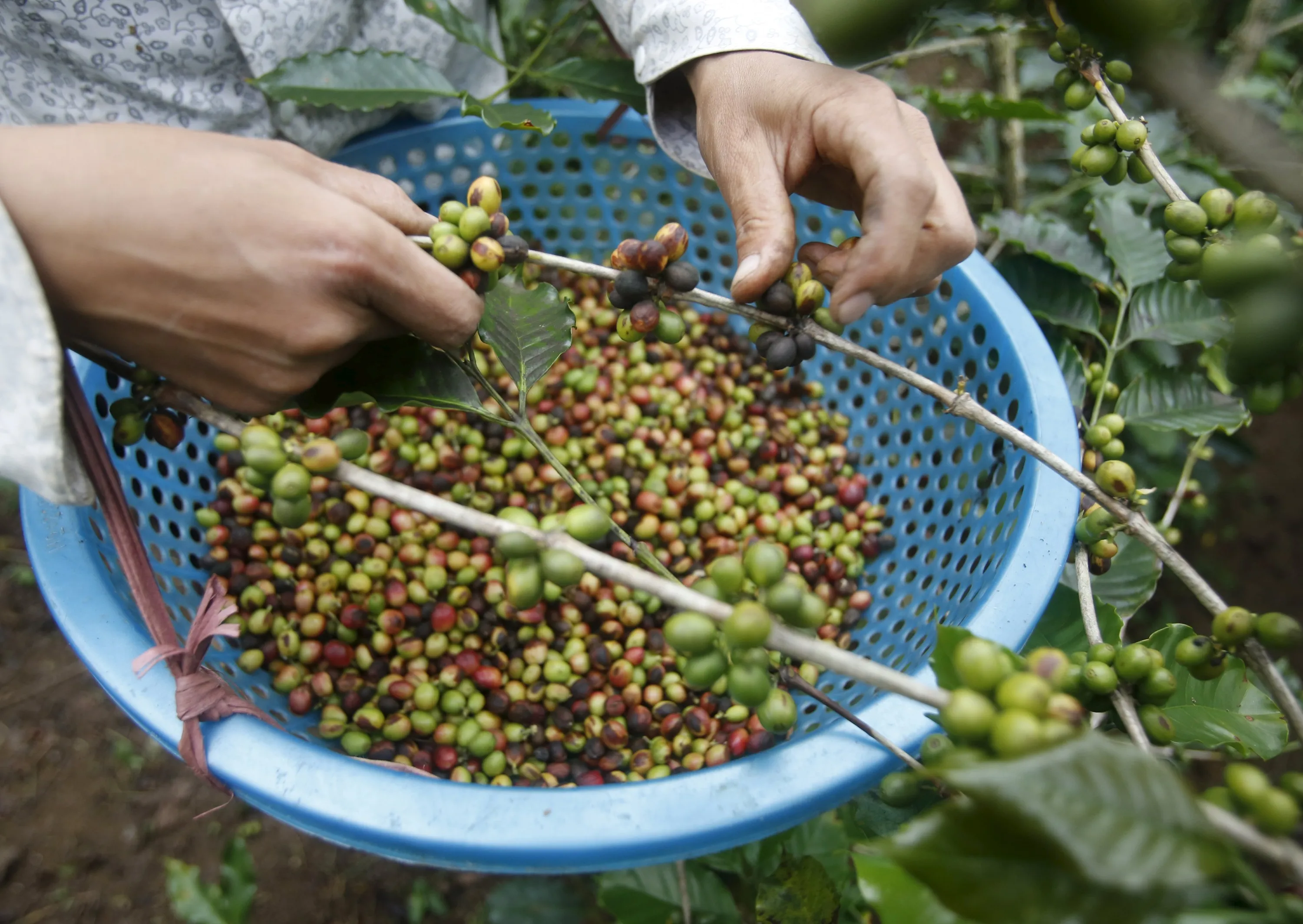 A woman of Thai ethnic tribe harvests coffee at a farm in Son La, northwest of Hanoi, Vietnam October 13, 2015. (Photo by Reuters/Kham)