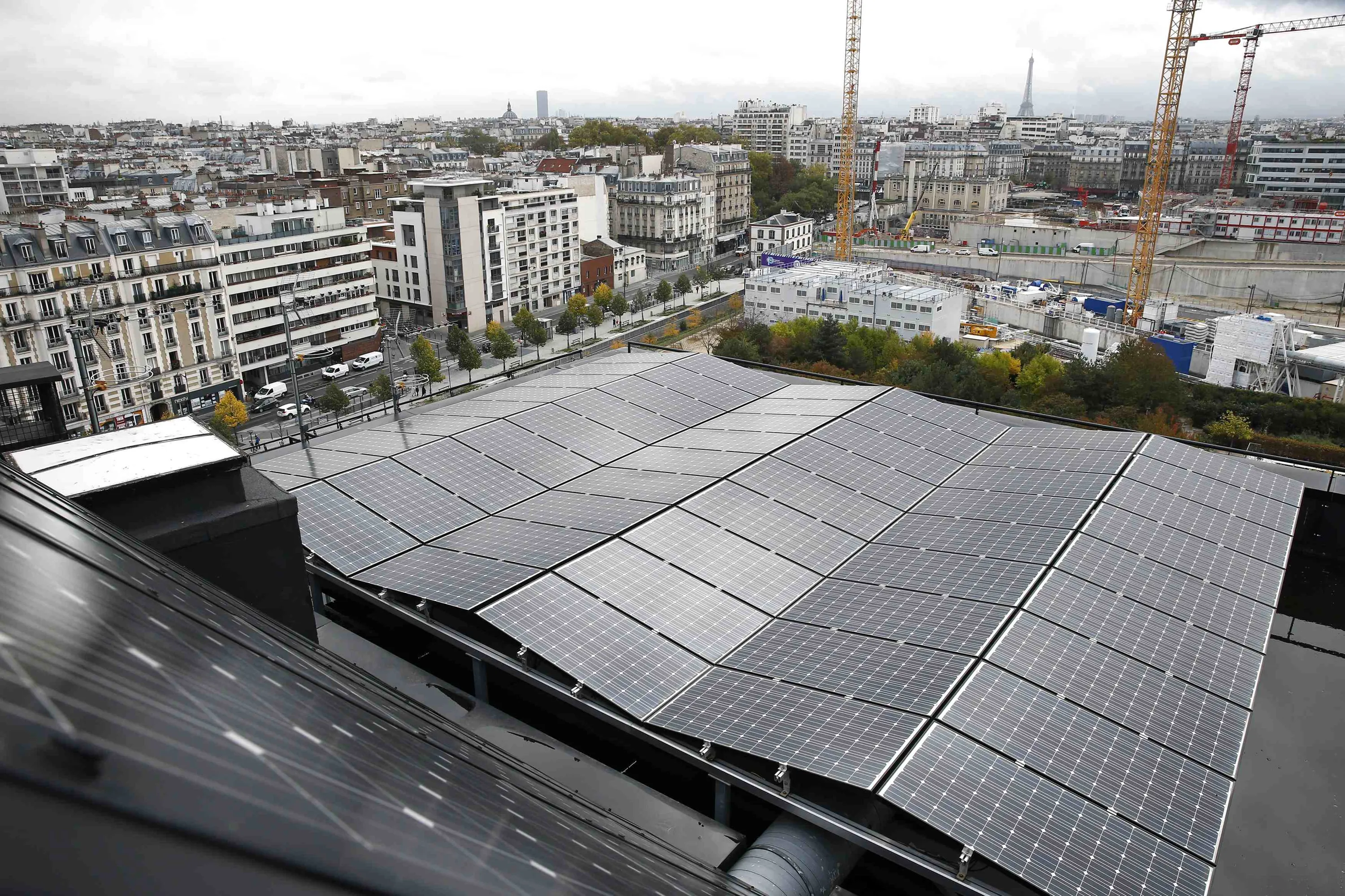 A general view shows solar panels installed in the "eco-neighbourhood" Clichy-Batignolles, one of several new ecological housing developments with low energy use and carbon emissions, in Paris, France, October 22, 2015. The city of Paris presented its latest "eco-neighbourhood" ahead of the COP21, the World Climate Summit from November 30 to December 11, 2015. (Photo by Benoit Tessier/Reuters)
