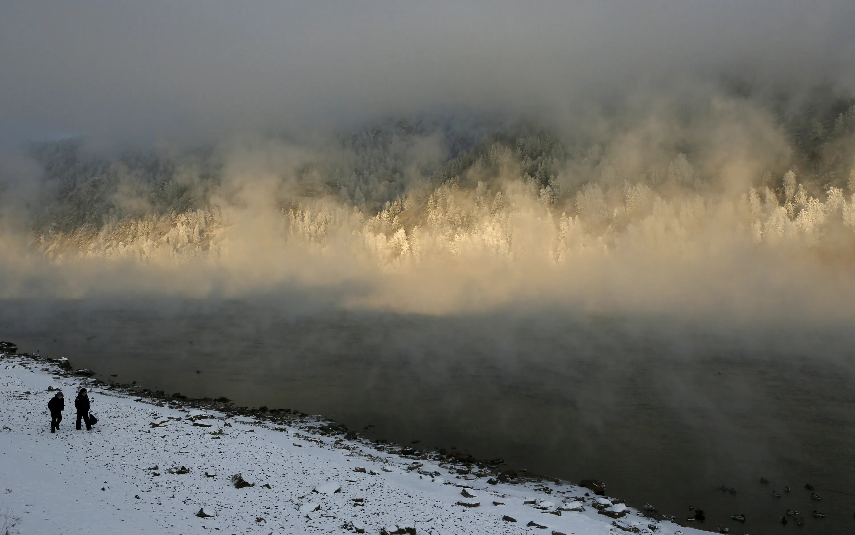 Schoolchildren walk along a bank of the Yenisei River covered with a frosty fog, with the air temperature at about minus 26 degrees Celsius (minus 14.8 degrees Fahrenheit), in the Siberian town of Divnogorsk near Krasnoyarsk, Russia November 24, 2015. (Photo by Ilya Naymushin/Reuters)