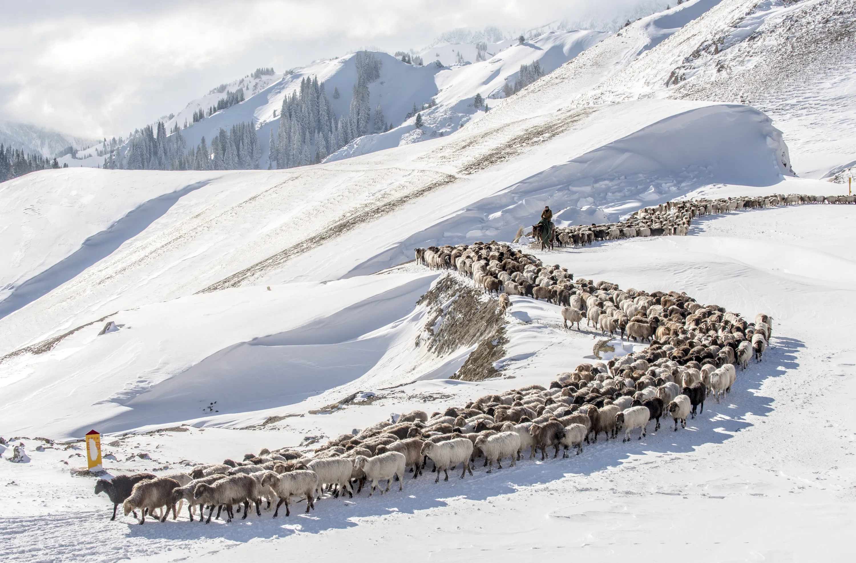 Kazakh herdsmen drive their sheep and goats among snow-covered fields at Guozigou valley in Yili, Xinjiang Uighur Autonomous Region, China, November 21, 2015. (Photo by Reuters/China Daily)