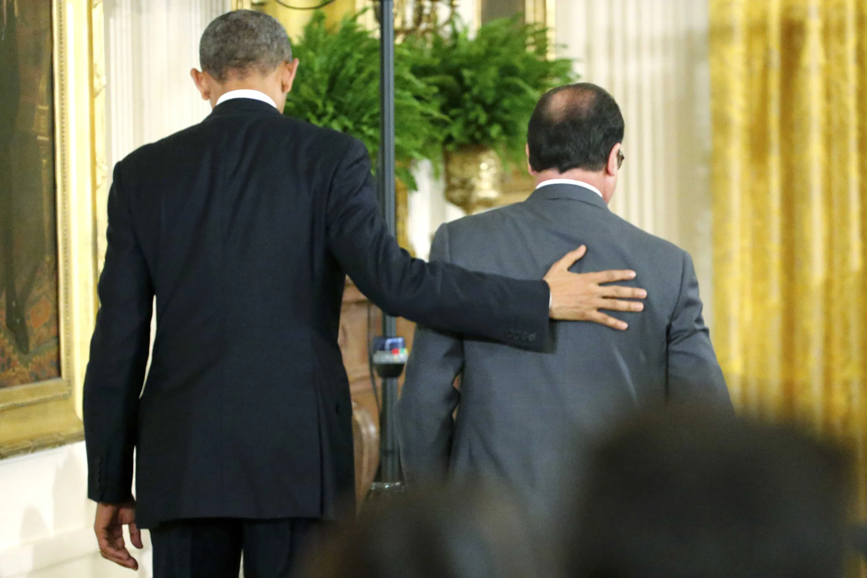 U.S. President Barack Obama (L) and French President Francois Hollande depart after a joint news conference in the East Room of the White House in Washington November 24, 2015. (Photo by Jonathan Ernst/Reuters)