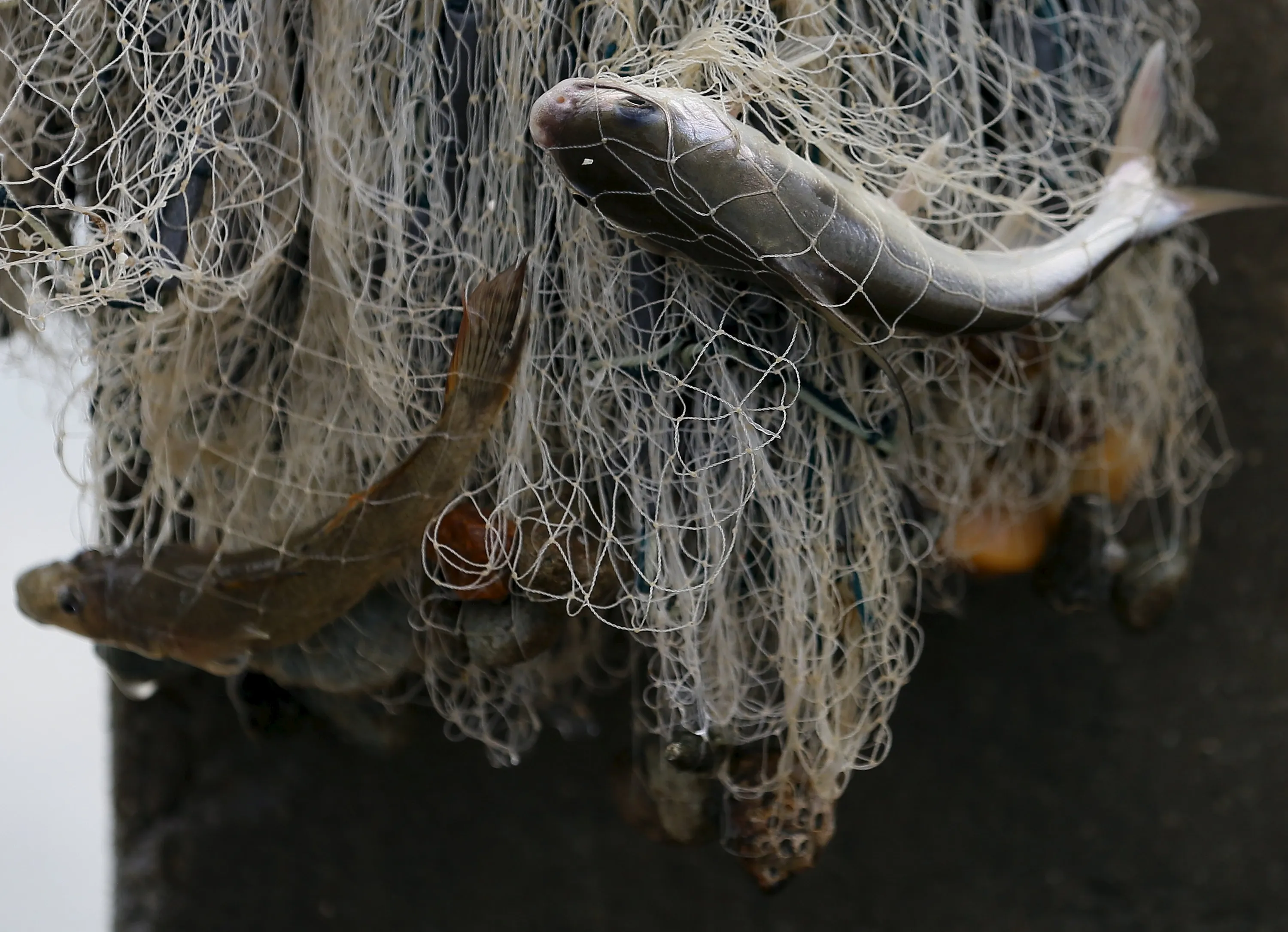 Fishes struggle in a net after being caught by a fisherman in a lagoon in Batticaloa November 24, 2015. (Photo by Dinuka Liyanawatte/Reuters)