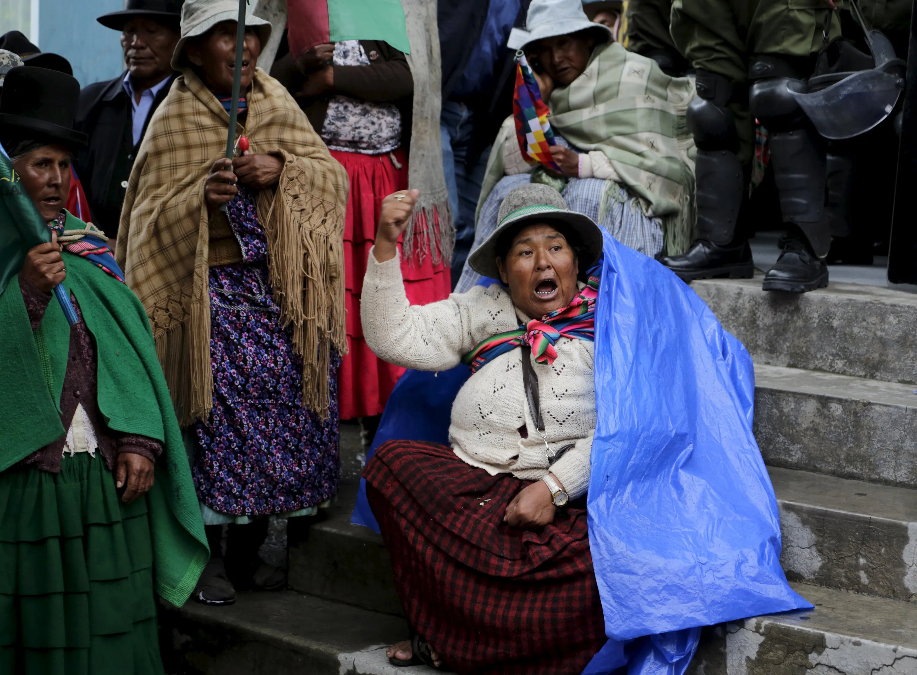 Women participate in a protest in La Paz, November 24, 2015. Thousands of residents of Pacajes, a province in the department of La Paz, arrived in La Paz to demand government investments in their region, according to local media. (Photo by David Mercado/Reuters)