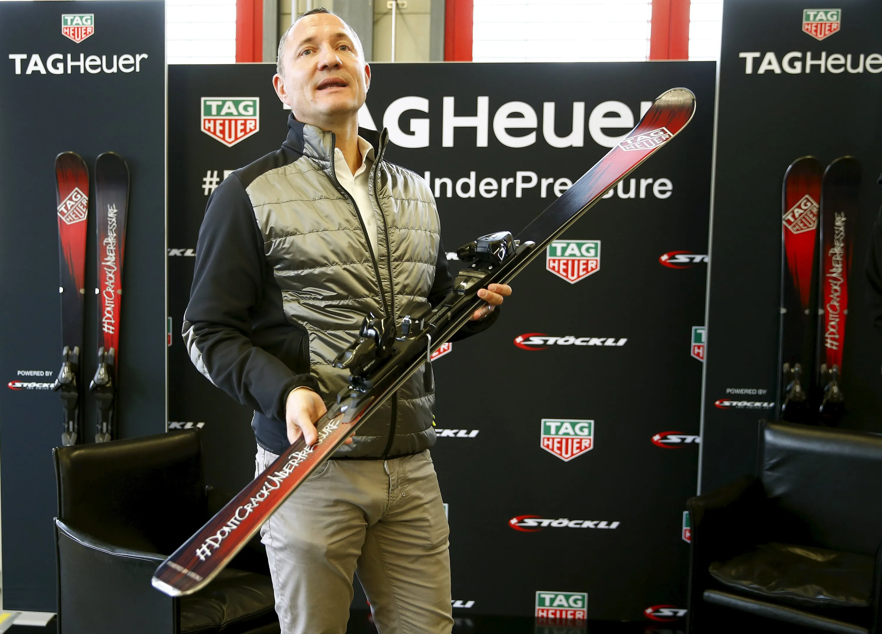 Marc Glaeser, CEO of Swiss manufacturer Stoeckli displays a ski of the new TAG Heuer Stoeckli special ski edition during a news conference in Malters, Switzerland November 25, 2015. Stoeckli plans to produce some 1,000 pair of skis per year of a special edition for Swiss watch manufacturer TAG Heuer, a brand of LVMH Group. (Photo by Arnd Wiegmann/Reuters)