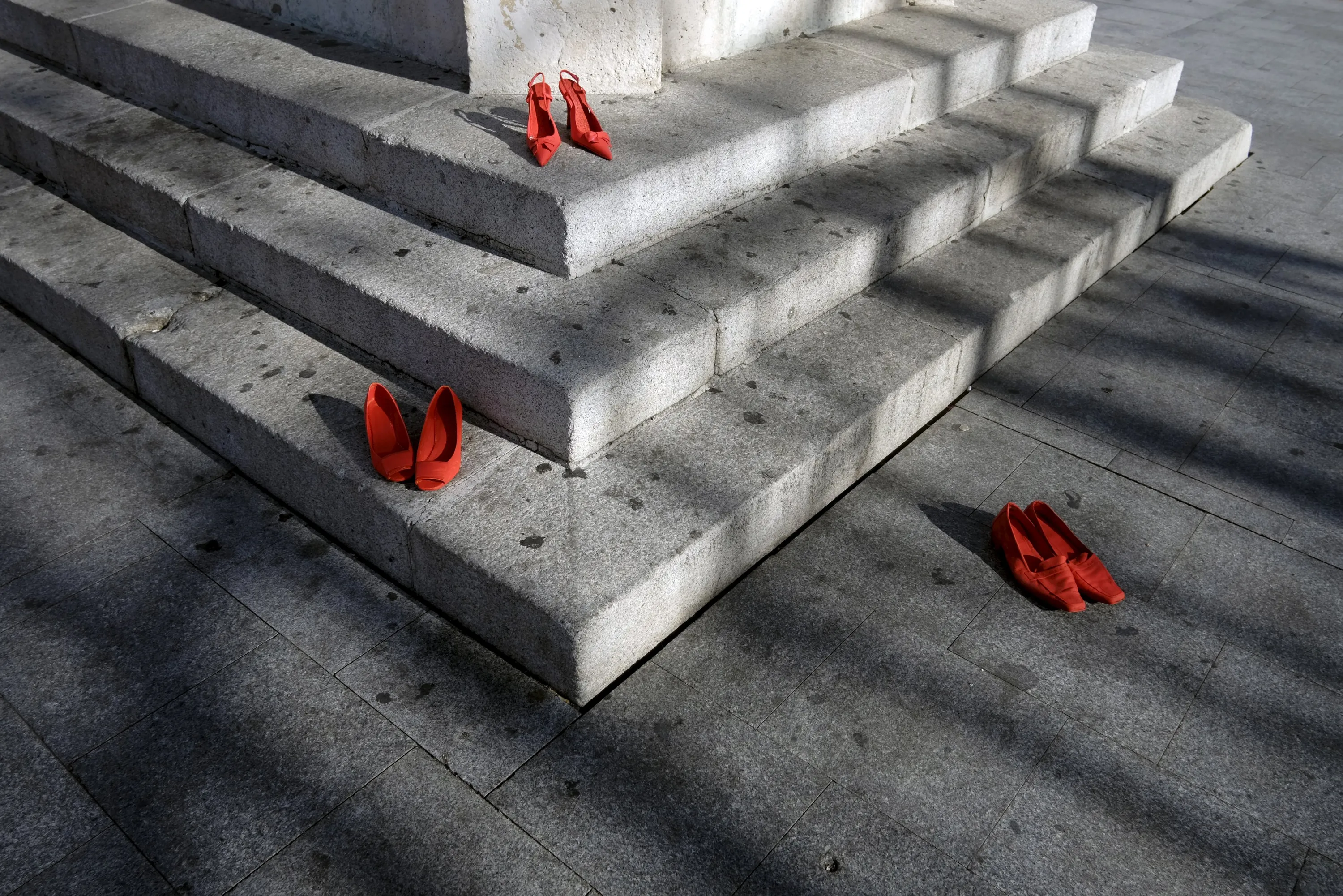 Red shoes are seen placed at Plaza Mayor, as part of an installation to protest against gender violence and femicide, in Valladolid, Spain November 25, 2015. (Photo by Juan Medina/Reuters)