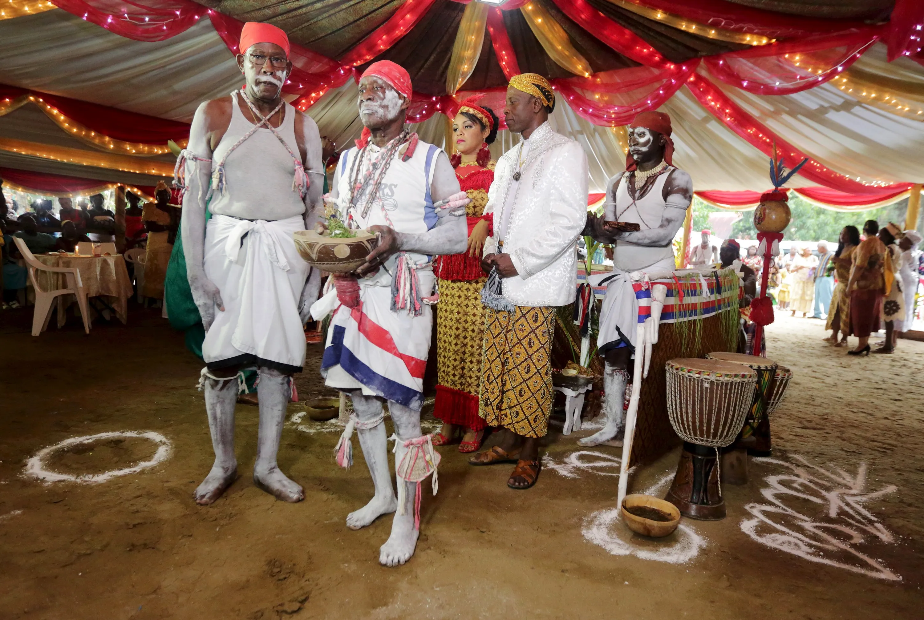 Winti spiritual leader Ramon Mac-Nack (center R) and his bride Melissa Karwafodi are wedded by a Maroon priest (2nd L) in the first Winti marriage ever to be held in public, in district Para, Suriname, November 16, 2015. (Photo by Ranu Abhelakh/Reuters)